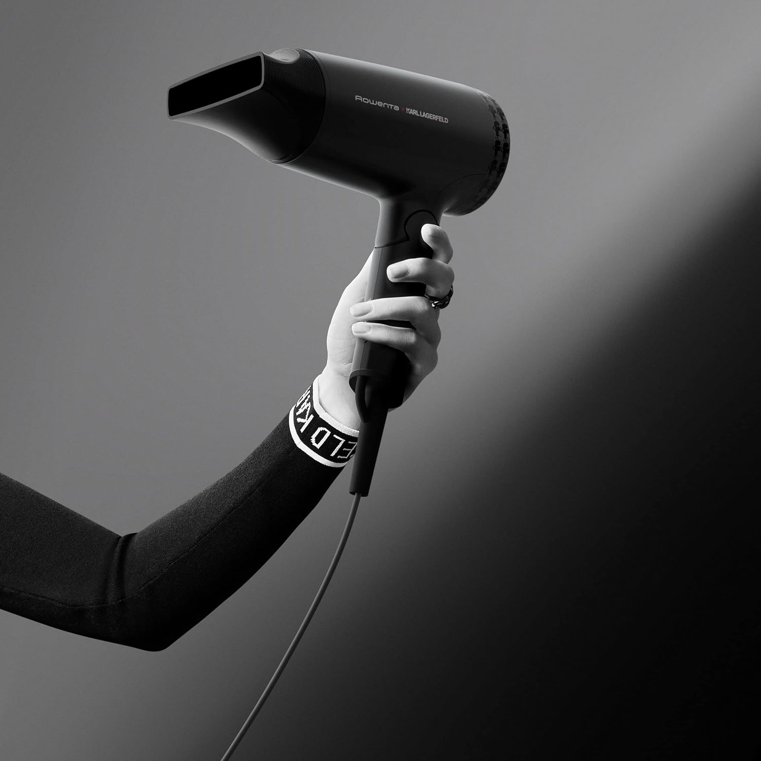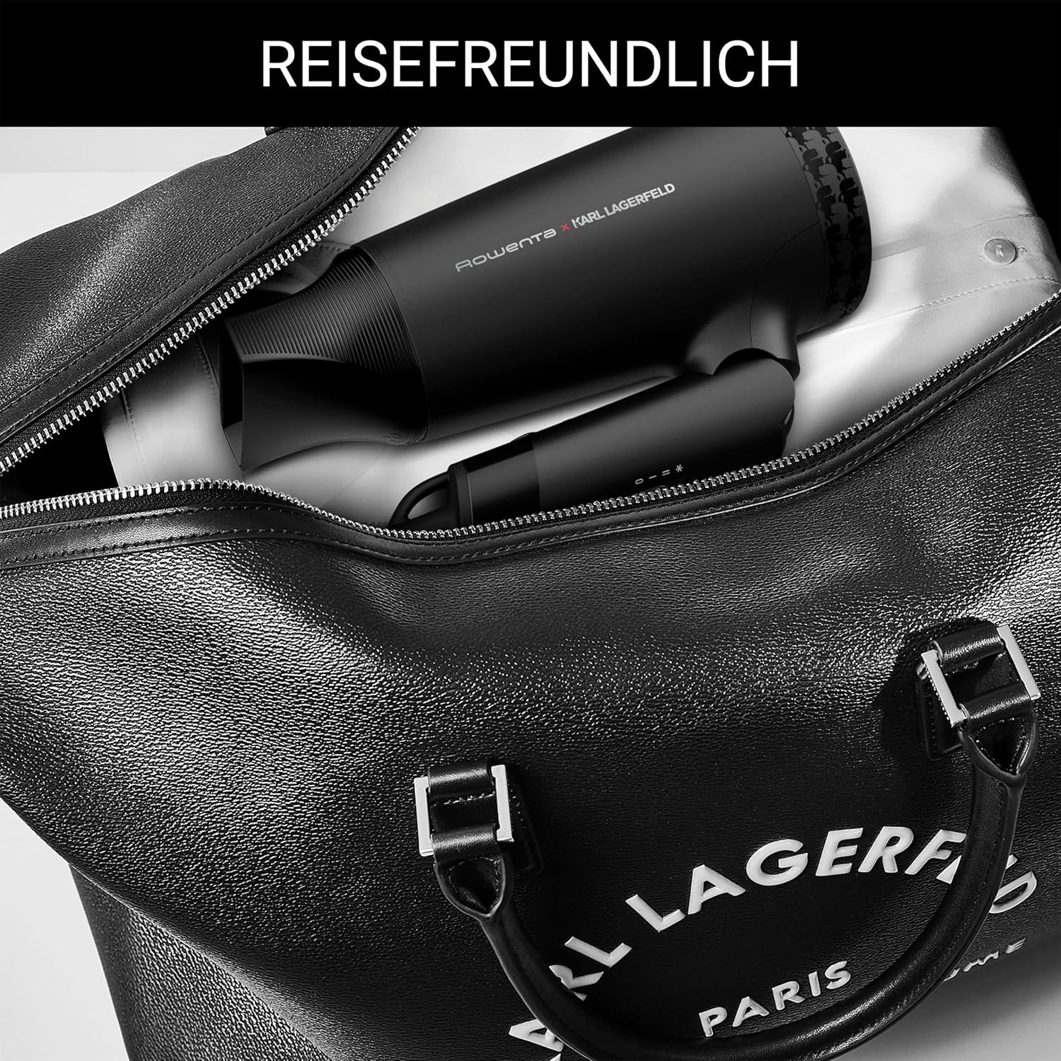 Rowenta x Karl Lagerfeld CV184L Express Style Haartrockner | kompakt und kraftvoll | klappbares Design | reisefreundlich | ultraleicht | Glanz-Booster | individuelle Einstellungen | Schwarz Reise | Dual-Volt | klappbar