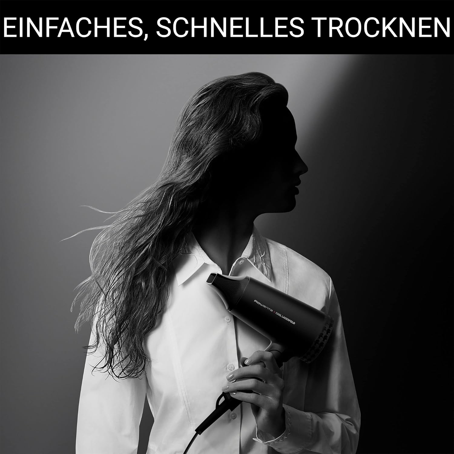 Rowenta x Karl Lagerfeld CV184L Express Style Haartrockner | kompakt und kraftvoll | klappbares Design | reisefreundlich | ultraleicht | Glanz-Booster | individuelle Einstellungen | Schwarz Reise | Dual-Volt | klappbar | قیمت یورویی 24.99€