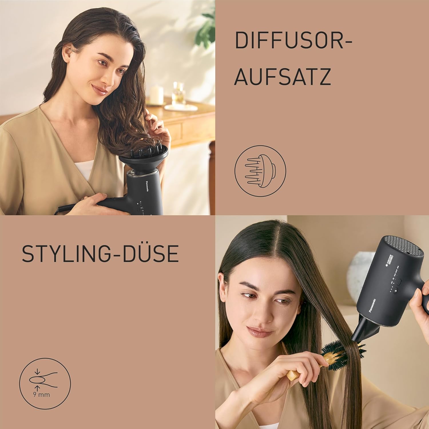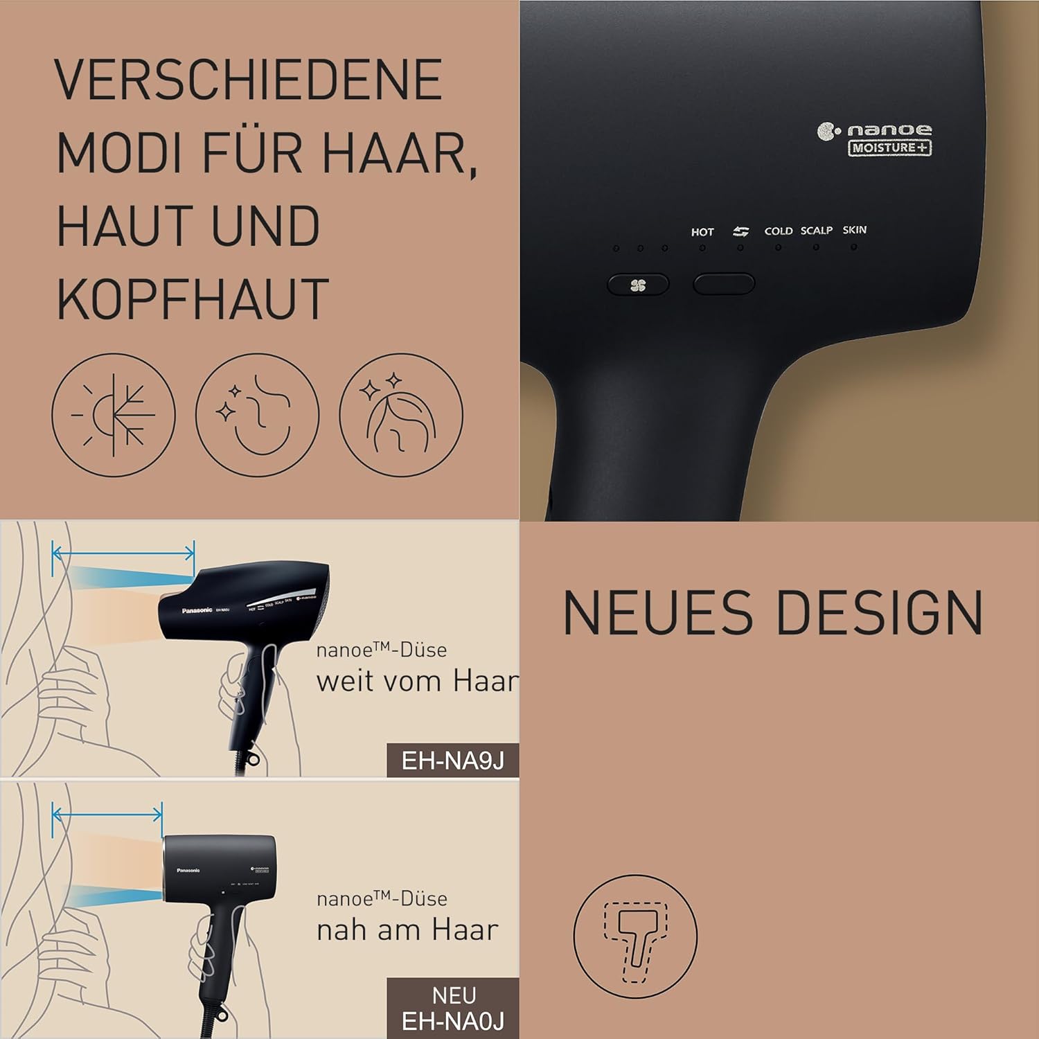 Panasonic EH-NA0J-N825 nanoe™ MOISTURE+ & Mineral Haartrockner, If Design Award, Diffusor & Konzentratordüse, Heiß- & Kalt-Wechselmodus, Pflege für Haut, Kopfhaut & Haarspitzen, 1600 W, Schwarz | قیمت یورویی 194.49€