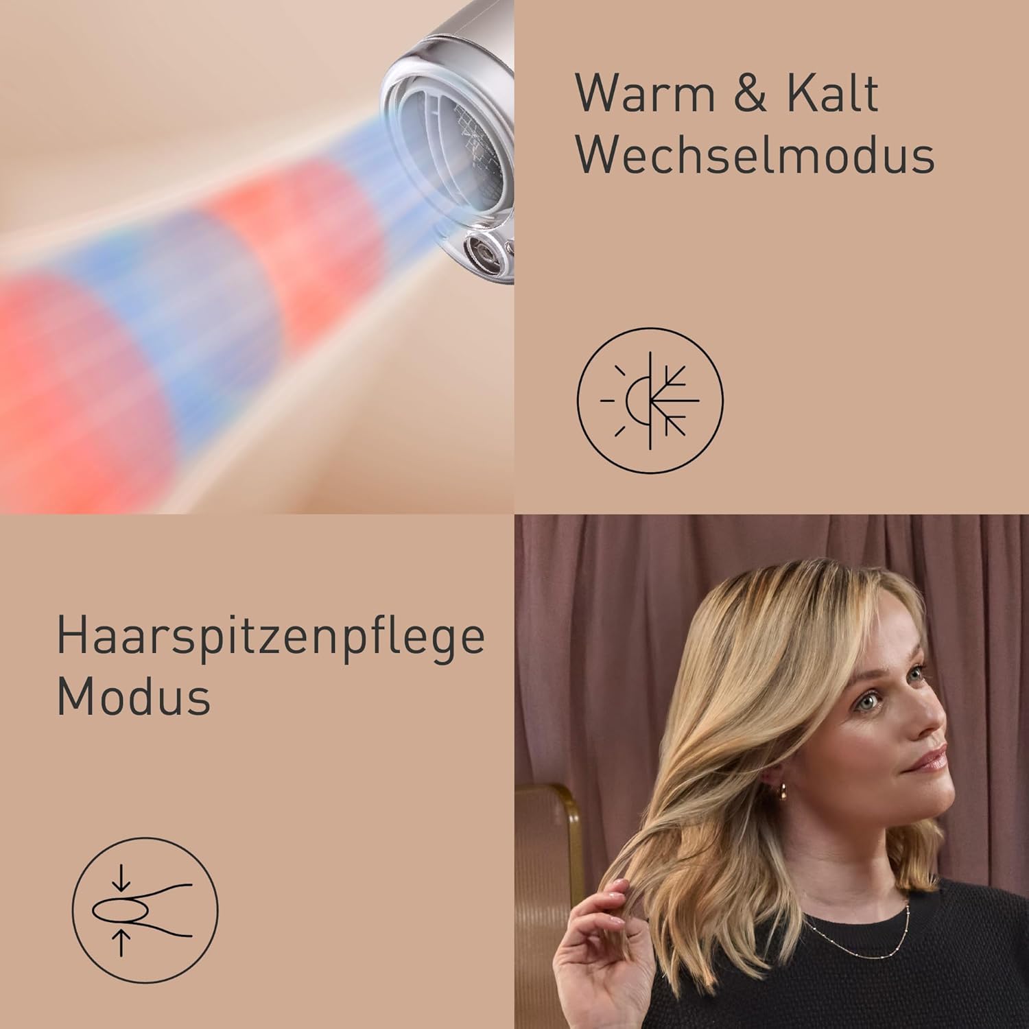 NANOE TECHNOLOGIE: Für glänzendes Haar ohne Frizz dank nanoe Technologie, die mit ultrafeinen Wasserpartikeln Haar und Kopfhaut mit Feuchtigkeit versorgt DOUBLE MINERAL: Reduziert Spliss und Bürstenschäden mit der Mineral-Ionen-Technologie dieses Haartrockners, die die Feuchtigkeit in der Cuticula versiegelt SCHNELLES TROCKNEN: Der verbesserte Luftstrom dieses Double Mineral-Haartrockners minimiert den Luftverlust und erhöht den Luftdruck für schnellere und effizientere Ergebnisse INTELLIGENTE SENSORIK: Dieser Haartrockner schützt das Haar vor übermäßiger Hitze mit den zwei integrierten Sensoren, die die Einstellungen automatisch an die Luft- und Umgebungstemperatur anpassen SPEZIALPFLEGEMODI: Der Haartrockner bietet Modi für Haar, Haarspitzen, Kopfhaut und Gesichtshaut, die für geschmeidiges Haar und mehr Widerstandskraft dank nanoe Technologie und Zinkionen sorgen VIELSEITIGE AUFSÄTZE: Der Haartrockner mit Diffusor, Schnelltrockendüse und Stylingdüse sorgt für schnelles Trocknen, Stylen, definierte Locken oder mehr Volumen PREMIUM-DESIGN: Der elegante, ikonische Look dieses Haarstyling-Geräts sowie die intuitive Bedienung sorgen für eine kinderleichte und stylische Haarpflege | قیمت یورویی : 139.99€