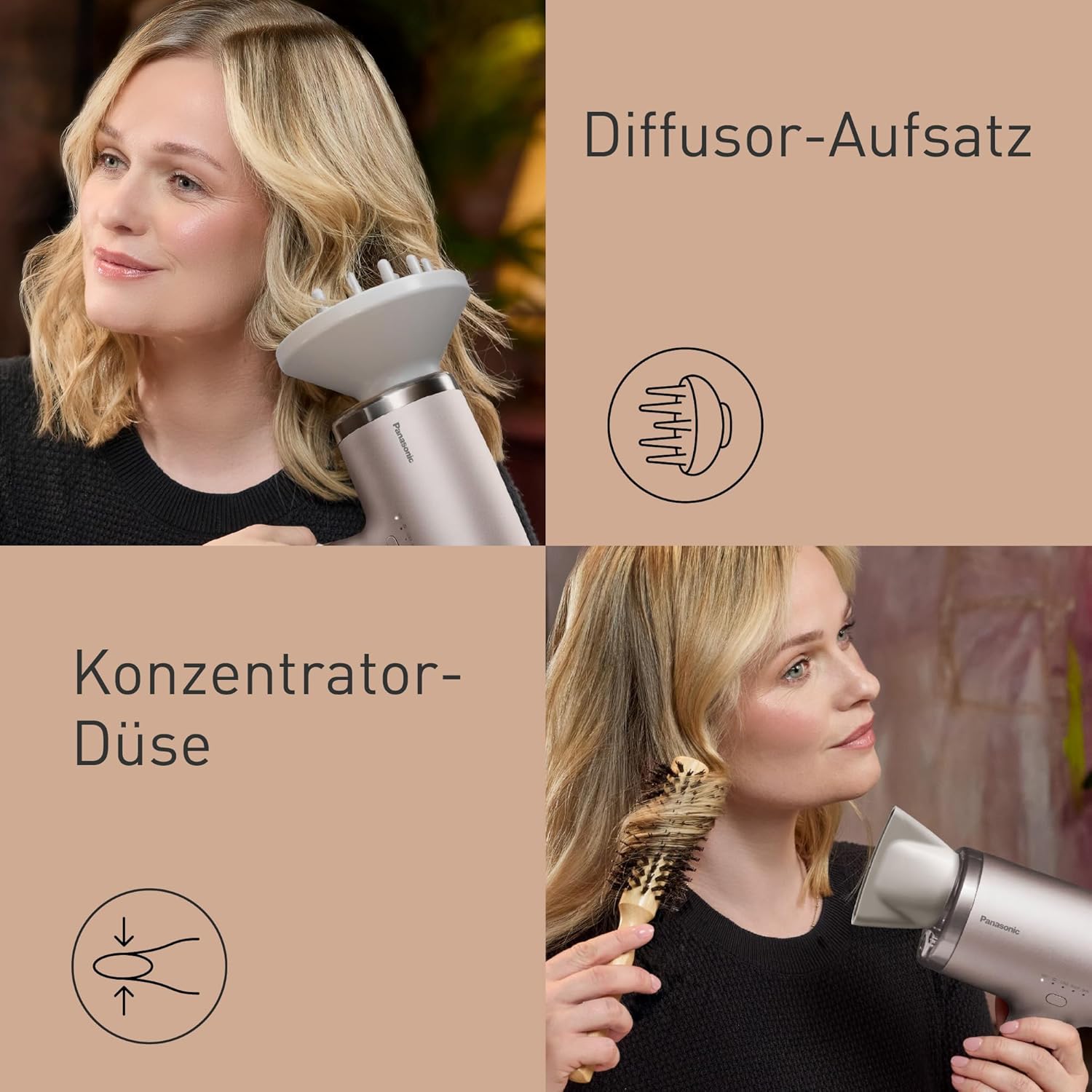 Panasonic EH-NA9N-E825 nanoe™ & Mineral-Ionen-Haartrockner, Anti-Haarschäden, Schnelltrocknen, Intelligente Sensorik, Kopf-und Gesichtshautmodi, Konzentrator-Aufsatz, 1600 W, Greige Greige Asciugacapelli a ioni minerali (2025) | قیمت یورویی 139.99€