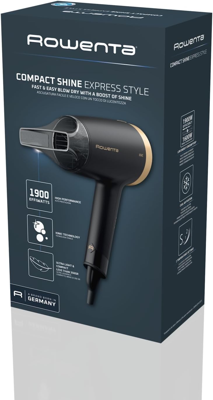 Rowenta CV1811 Express Style Haartrockner | 1900 Effiwatt | 2 Einstellungen | Ionen-Technologie | leistungsstark | Kaltlufttaste | 1,8 m Netzkabel | kompaktes und ultraleichtes Design | Schwarz/Gold | قیمت یورویی 16.57€
