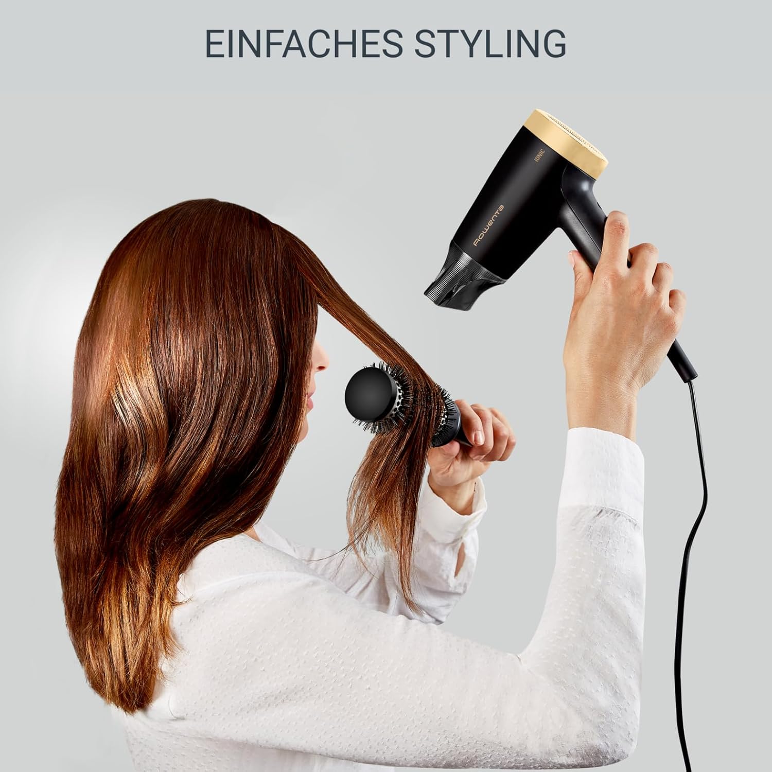 سشوار Rowenta CV1811 Express Style | 1900 وات | 2 حالت تنظیم | فناوری آیونیک | قدرتمند | دکمه هوای سرد | سیم برق 1.8 متری | طراحی جمع و جور و فوق العاده سبک | مشکی/طلایی
