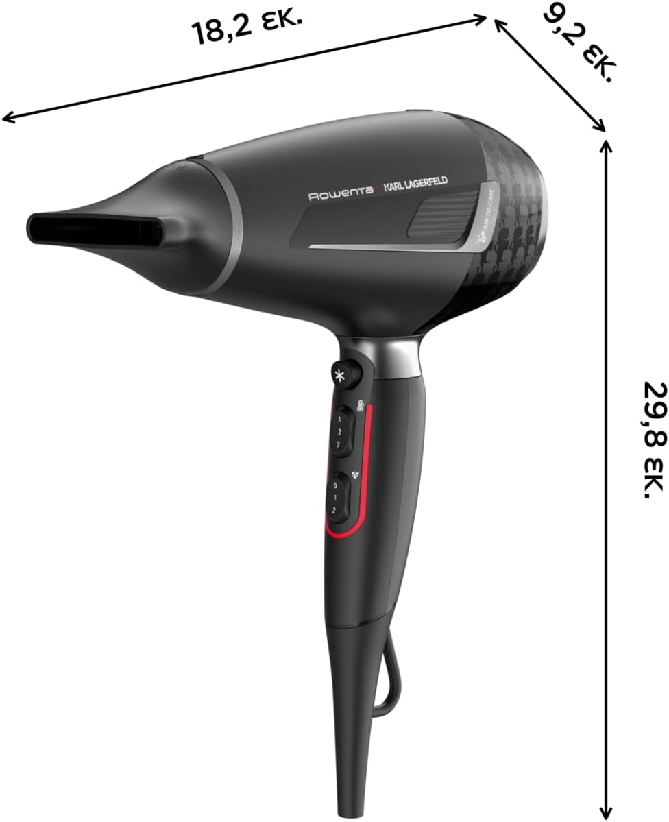 Rowenta x Karl Lagerfeld CV888L K/Pro Stylist Haartrockner | 2200 Watt Pro AC-Motor | ultraschnelles Trocknen | Ionic Shine | Glanz-Booster | Kaltlufttaste | inkl. Zubehör | Schwarz/Rot Schwarz Kl | 4 Zubehörteile | قیمت یورویی 47.41€