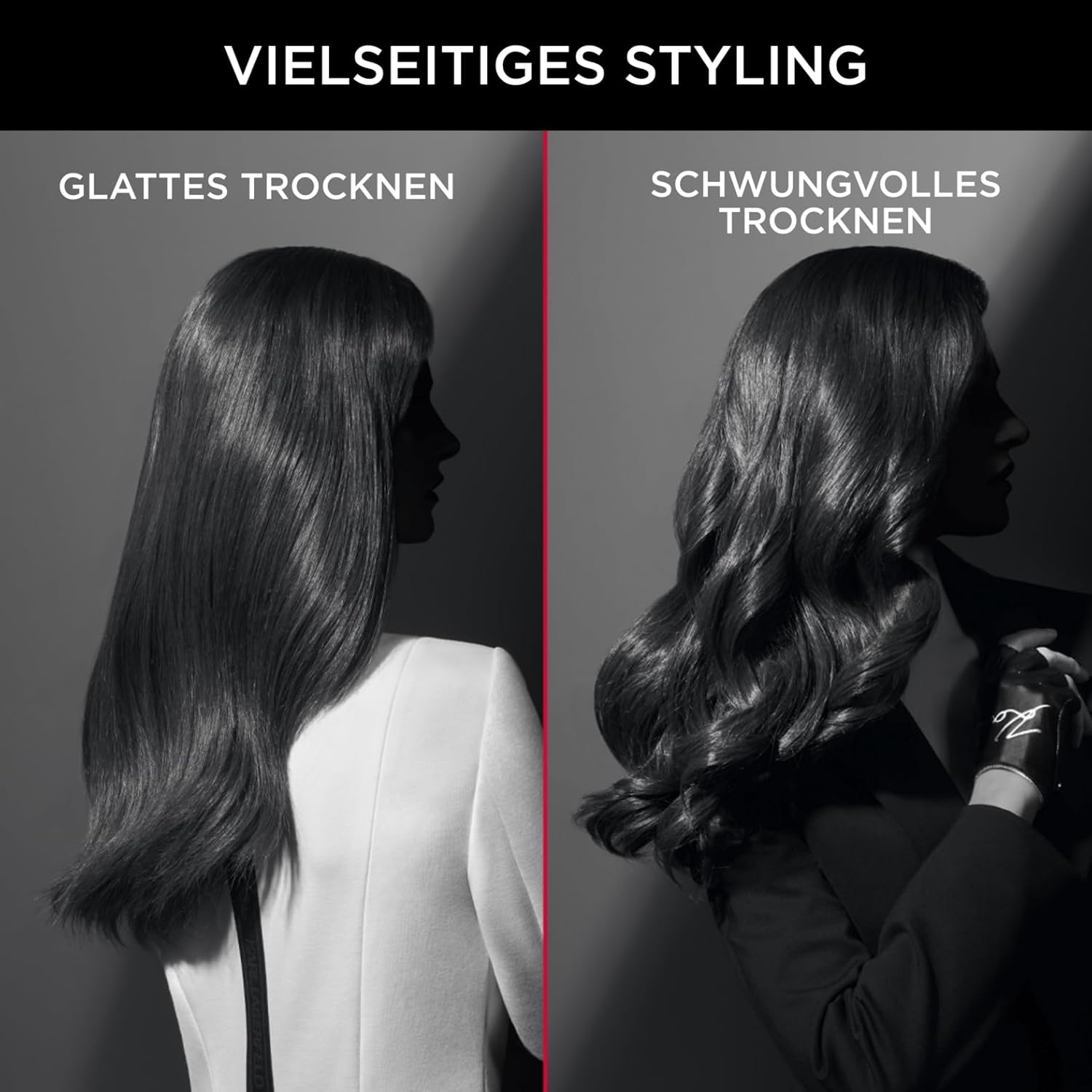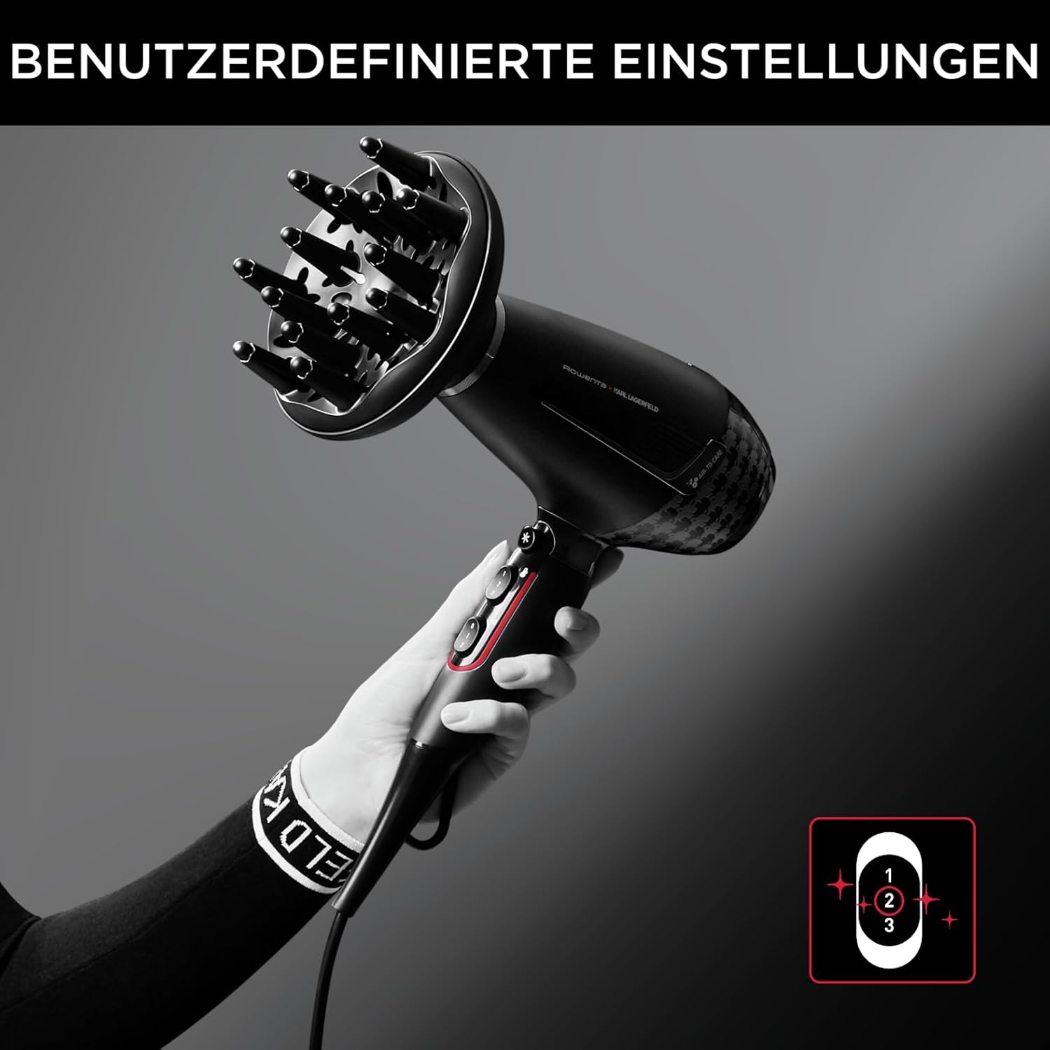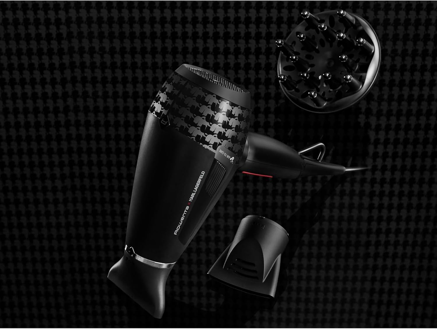 Rowenta x Karl Lagerfeld CV888L K/Pro Stylist Haartrockner | 2200 Watt Pro AC-Motor | ultraschnelles Trocknen | Ionic Shine | Glanz-Booster | Kaltlufttaste | inkl. Zubehör | Schwarz/Rot Schwarz Kl | 4 Zubehörteile