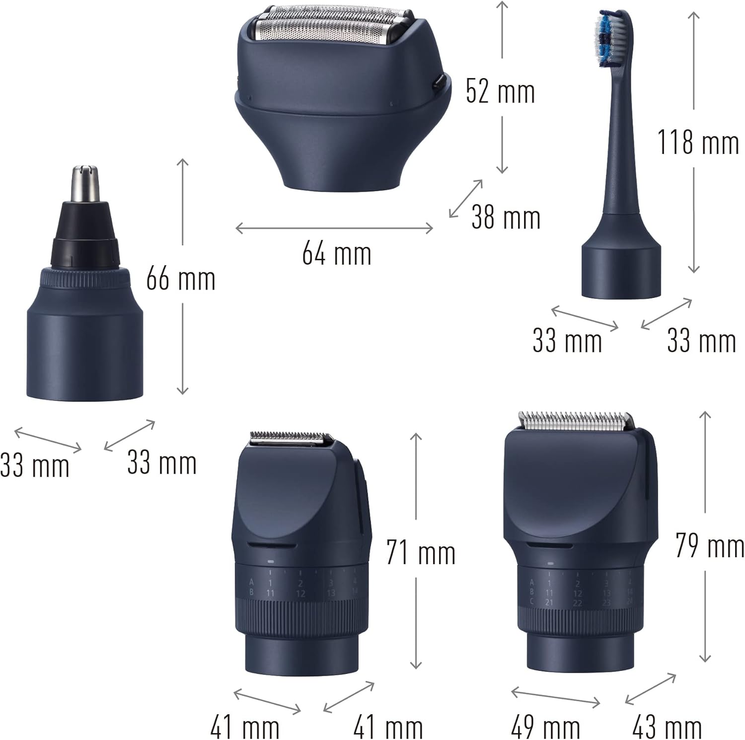 سیستم اصلاح مدولار پاناسونیک MULTISHAPE برای آقایان، اصلاح کننده ریش/مو، اصلاح کننده ریش/مو/بدن، سر ریش تراش ۳ تیغه، مسواک برقی و ضمیمه اصلاح کننده بینی/گوش/ابرو
