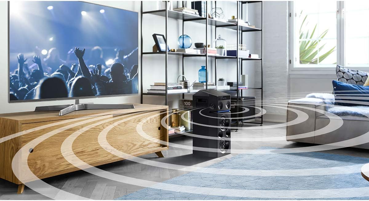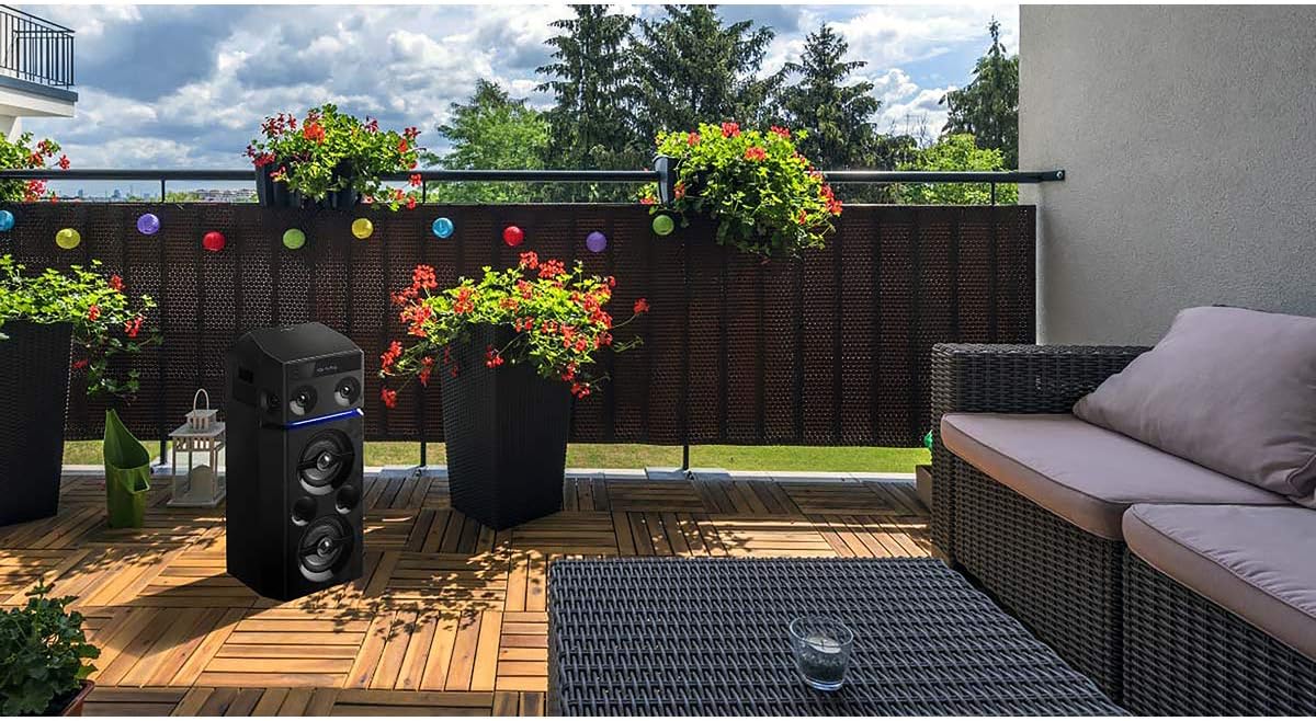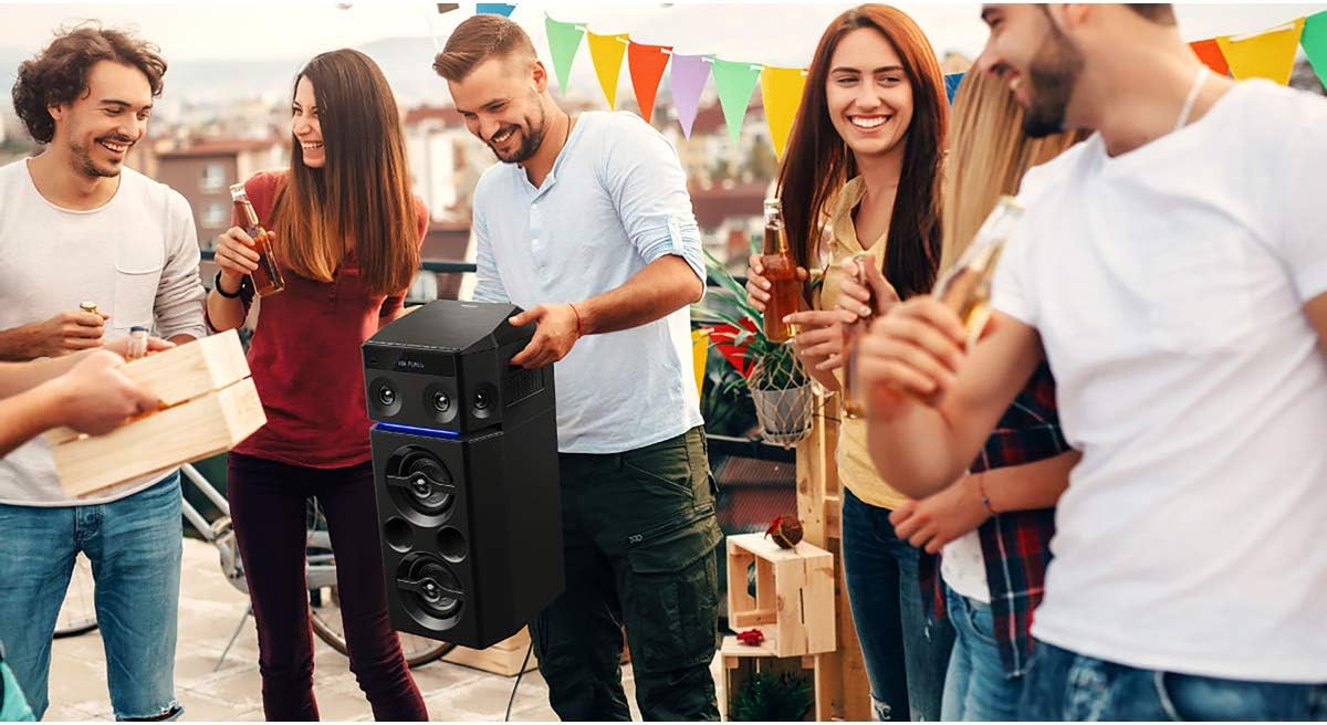 Kraftvolles Musiksystem mit 300 Watt (RMS) Ausgangsleistung Vier Hochtöner und zwei Tieftöner für beeindruckenden, raumfüllenden 180 Grad Sound Vielzahl an Zuspielmöglichkeiten dank UKW-Radio Tuner, Bluetooth-Funktion, USB und AUX-Eingang Optischer Eingang für TV-Sound Zwei Mikrofon-Eingänge und Karaoke-Funktion für garantierten Partyspaß | قیمت یورویی : 275.21€
