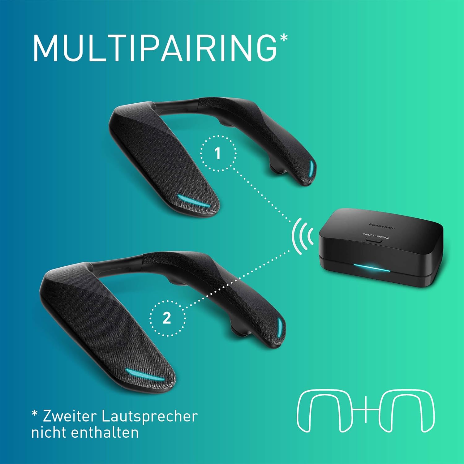 Panasonic SC-GNW30 Kabelloser Heimkino Nacken-Lautsprecher Surround Sound System mit integriertem Mikrofon; HDMI 2.1, USB, Bluetooth 9h Akkulaufzeit, kompatibel mit TV, PC, macOS, PS4/PS5/Switch/Xbox | قیمت یورویی 335.04€