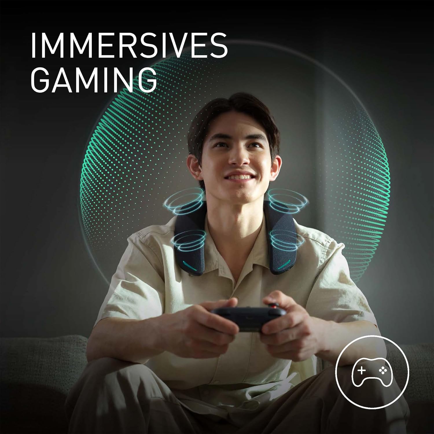 PERSÖNLICHES HEIMKINO: Genießen Sie 3D-Surround-Sound mit diesem 4-Lautsprecher-Nackenbügel-Design (vier ergonomische 38-mm-Treiber), das bequem auf Ihren Schultern aufliegt IMMERSIVES GAMING: Die kabellose 2,4-GHz-Verbindung mit geringer Latenz synchornisiert Ton und Bild. 3 ideale Klangmodi: RPG für Immersion, FPS für räumlichen Klang und Voice für dialoglastige Spiele EFFIZIENTES ARBEITEN VON ZUHAUSE: Der GNW30-Nackenlautsprecher hat zwei Mikrofone mit KI-Rauschunterdrückung für klare Telefonate, taktile Bedienelemente und intuitive LED-Beleuchtung MULTI-PAIRING: Unser persönliches Surround-Sound-System ist auf Sie zugeschnitten. Zudem können weitere kompatible Geräte gekoppelt werden (zusätzliche GNW30 oder GNW10 sind separat erhältlich) KONNEKTIVITÄT: Enthält einen kabellosen Sender mit HDMI 2.1, USB und Bluetooth 5.3 sowie USB-C-Aufladung; kompatibel mit TV, PCs (Windows 10/11), macOS und Konsolen (PS4/PS5/Switch im TV-Modus/Xbox) APP-STEUERUNG: Passen Sie den EQ, die Klangmodi, die Mikrofoneinstellungen und die Lautstärkebalance dieses tragbaren Lautsprechers über die SoundSlayer Engine-App an, um Ihren Klang fein abzustimmen | قیمت یورویی : 335.04€