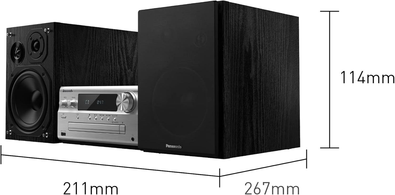 سیستم صوتی پاناسونیک SC-PMX802E-S Premium Hi-Fi با رادیو DAB، پخش کننده CD و پخش جریانی با وضوح بالا، کروم کست یکپارچه، بلوتوث، AirPlay 2، بلندگوهای سه طرفه، نقرهای