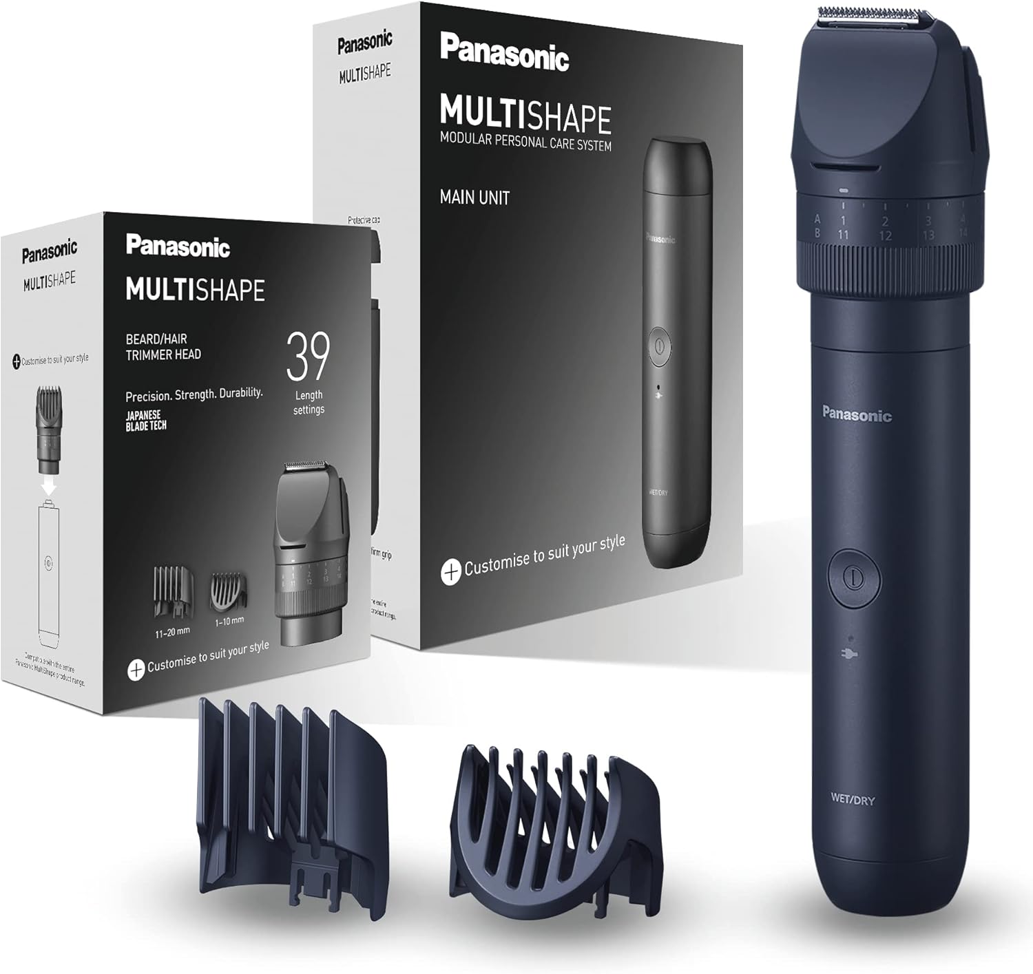 PERSONALISIEREN SIE IHR ERLEBNIS: Das modulare Körperpflege-System ist mit allen MULTISHAPE-Zubehörteilen kompatibel. Ersatzaufsätze, einschließlich Bart-/Haartrimmer, Bart-/Haar-/Körpertrimmer, 3-Klingen-Scherkopf, elektrische Zahnbürste und Nasen-/Ohren-/Augenbrauentrimmer sind separat erhältlich. Passen Sie Ihr Erlebnis individuell an. EINFACH & NACHHALTIG: Das benutzerfreundliche modulare System ist ideal für unterwegs und hält Ihr Badezimmer ordentlich. Die Möglichkeit, Ihren Pflegestil zu ändern, ohne ein neues Gerät zu kaufen, macht den Panasonic MULTISHAPE zum perfekten nachhaltigen Geschenk. 39 PRÄZISE SCHNITTLÄNGEN: Der Haarschneider-Aufsatz verfügt über ein leicht verstellbares Drehrad mit 39 Längeneinstellungen mit Intervallen von 0,5 mm und zwei Kammaufsätze, um Ihnen jedes Mal ein müheloses Trimmen zu ermöglichen. FORTSCHRITTLICHE JAPANISCHE KLINGENTECHNOLOGIE: Dieser Barttrimmer verfügt über einzigartige, scharfe Klingen aus japanischem Edelstahl mit 45-Grad-Nanoschliff, mit denen sich alle Stoppeln und alle Barttypen mühelos bearbeiten lassen. WASSERDICHTES & ANTI-RUTSCH-DESIGN: Dieses Produkt ist IPX7-zertifiziert, wasserdicht und für Waschbecken und Dusche sowie für eine einfache Reinigung geeignet. Die spezielle Anti-Rutsch-Beschichtung ist vielseitig einsetzbar, um in jeder Situation einen guten Halt zu gewährleisten. LANGLEBIGER Ni-MH-AKKU: Der Ni-MH-Akku bietet langanhaltende Leistung, mit einer Stunde Ladezeit für 50 Minuten Nutzung | قیمت یورویی : 46.99€