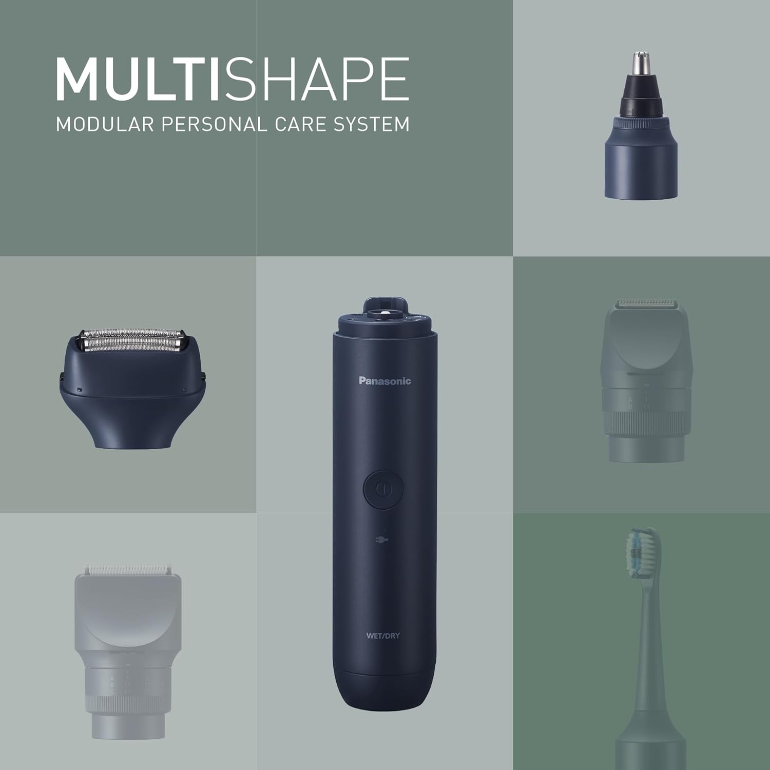 Panasonic XSHAPE JUNIOR MULTISHAPE Modulares Körperpflegesystem, Hauptgerät für MULTISHAPE-System, Nasen-/Ohren-/Augenbrauentrimmer, 3-Klingen-Scherkopf mit Li-Ionen-Akku, Schwarz