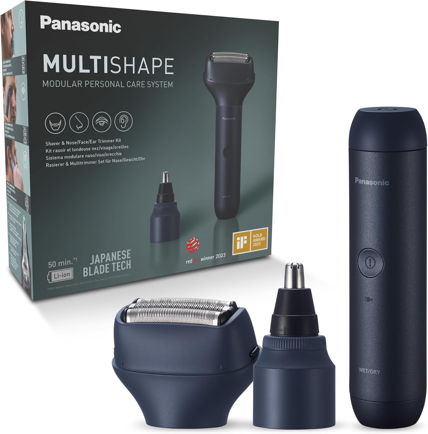 Panasonic XSHAPE JUNIOR MULTISHAPE Modulares Körperpflegesystem, Hauptgerät für MULTISHAPE-System, Nasen-/Ohren-/Augenbrauentrimmer, 3-Klingen-Scherkopf mit Li-Ionen-Akku, Schwarz | قیمت یورویی 75.49€