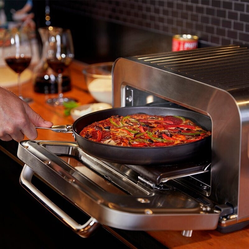فر پیتزا Sage مدل Pizzaiolo، انتخابی عالی برای دوستداران پیتزا در خانه است که کیفیت رستوران را میخواهند. این دستگاه با دستیابی به دمای حداکثر ۴۰۰°، ترکیب سه نوع گرمای هدایتشده، تابشی و همرفتی را ارائه میدهد تا سطح پایینی پیتزا بهصورت سریع و یکنواخت پخته شود و دور آن به رنگ طلایی برسد. فناوری Element iQ بهصورت هوشمند تنظیم میکند که کدام المنتها در چه زمانی فعال شوند تا نتیجهای مشابه تنور چوبی بهدست آید. طراحی استیل برسخورده همراه با صفحات پخت سنگی، دوام بالا و ظاهر حرفهای را تضمین میکند.
