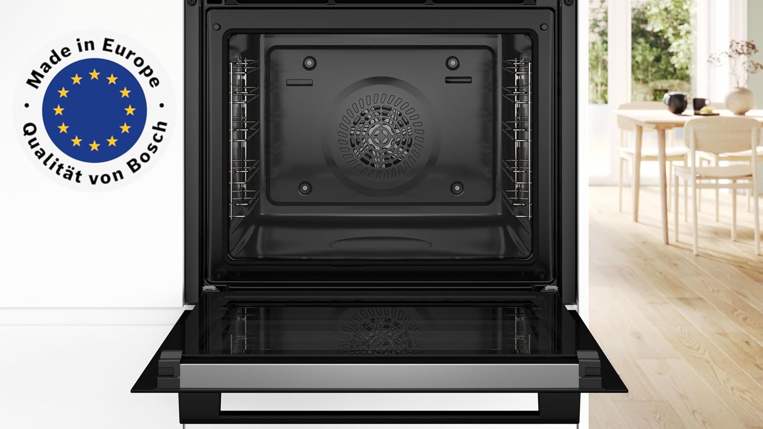 Bosch HBA272BB3, Serie 4, Einbau-Backofen, 60 x 60 cm, Pyrolyse-Selbstreinigung, LED Touch Control, 3D-Heißluft, 10 Automatikprogramme, Hydrolytische Reinigungshilfe, Schnellaufheizung, Schwarz Schwarz Serie 4 Selbstreinigend | Pyrolyse LED | Display | قیمت یورویی 499€