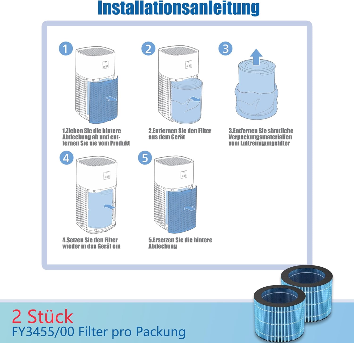 FY3455 Ersatzfilter für Philips 3000 Series AC3737/10 Luftreiniger mit Luftbefeuchter, 2-in-1 Filtersystem, Ersetzt Filter FY3455/00 (2 Stück) | قیمت یورویی 34.19€