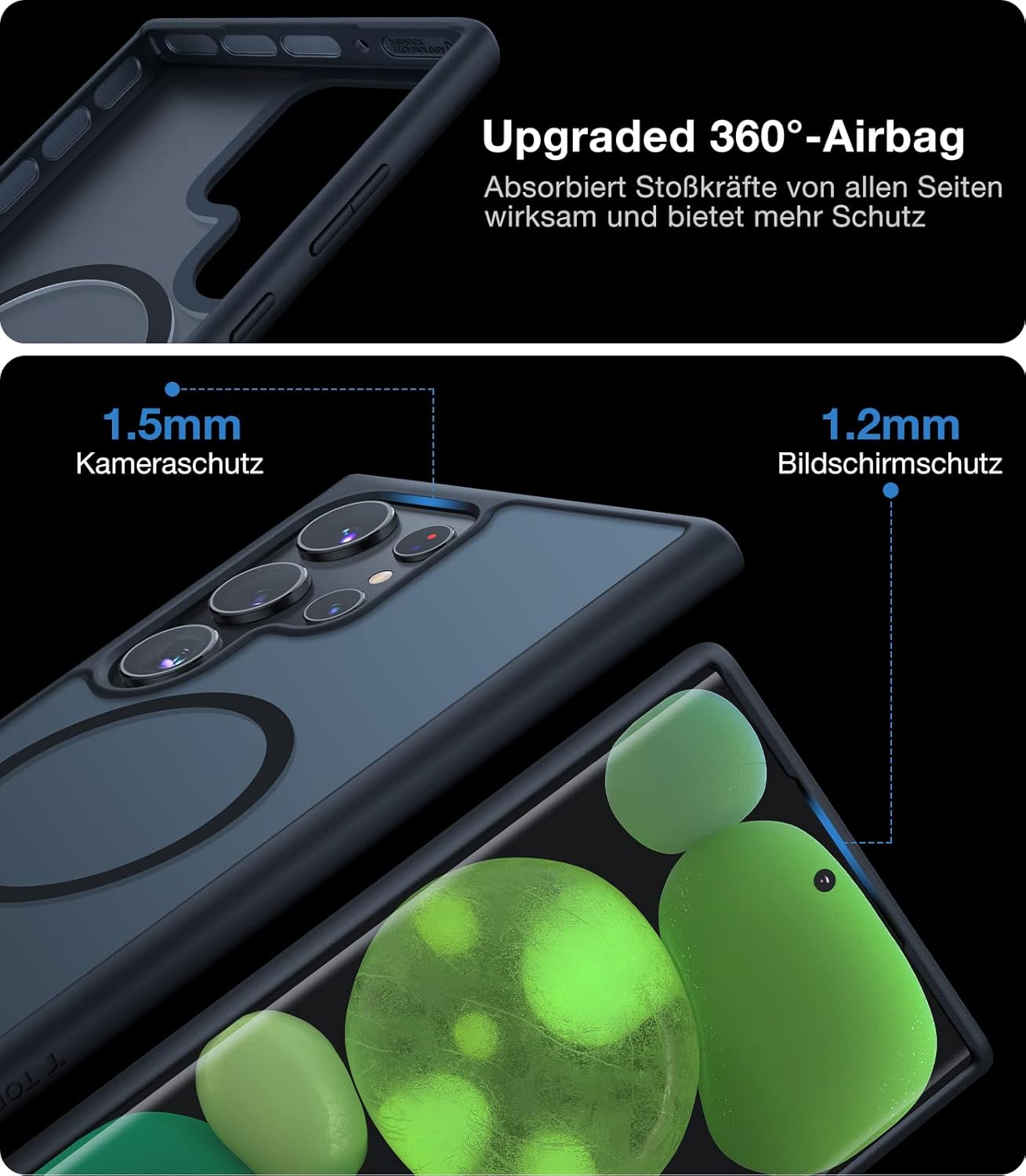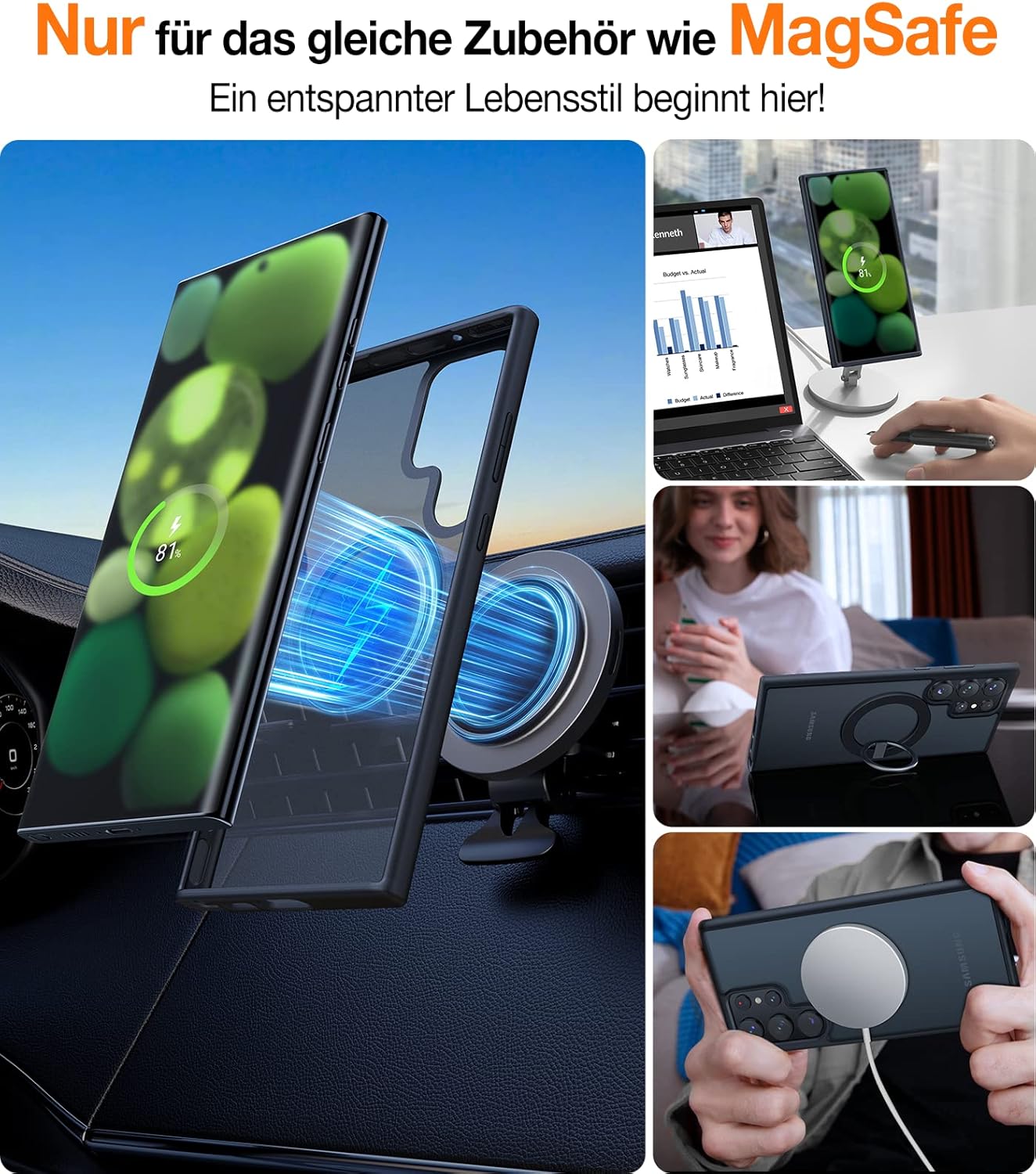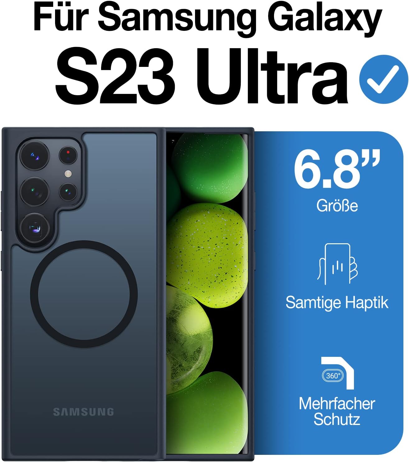 TORRAS Guardian-Mag für Samsung Galaxy S23 Ultra Hülle 5G (Super Magnetkraft & Militärischer Schutz) Extrem Stoßfest für Samsung S23 Ultra Hülle Matt Schwarz Schwarz Samsung Galaxy S23 Ultra لینک آمازون : https://www.amazon.de/dp/B0BNNB1GTM?th=1&psc=1 [حلقه مغناطیسی چند منظوره] [قدرت جذب فوقالعاده] [حفاظت در برابر سقوط با گواهینامه دوگانه] [چندین سطح حفاظت از جزئیات] [چسبندگی و حس فوقالعاده] [ظاهری شیک و زیبا]