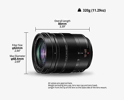 لنزهای دوربین Panasonic H-ES12060E Leica DG Vario-Elmarit (12-60mm/F2.8-4.0، زوم استاندارد، IS دوگانه، ضد گرد و غبار و پاشش آب، مشکی)