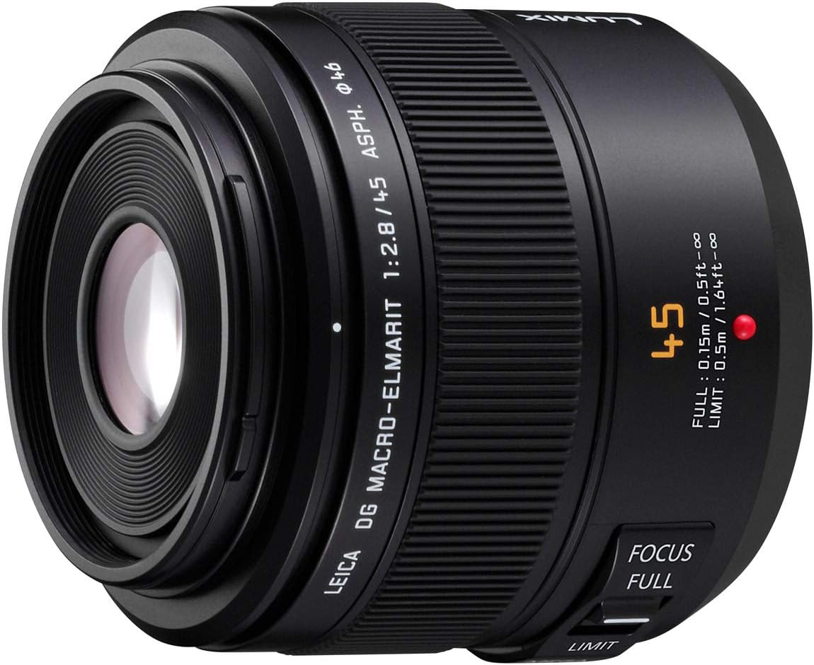 Panasonic H-ES045E LEICA DG ELMARIT Makro 45 mm F2.8 ASPH. Objektiv (Hochleistungs-Makro Objektiv, 90 mm KB, O.I.S.) schwarz Single | قیمت یورویی 688€