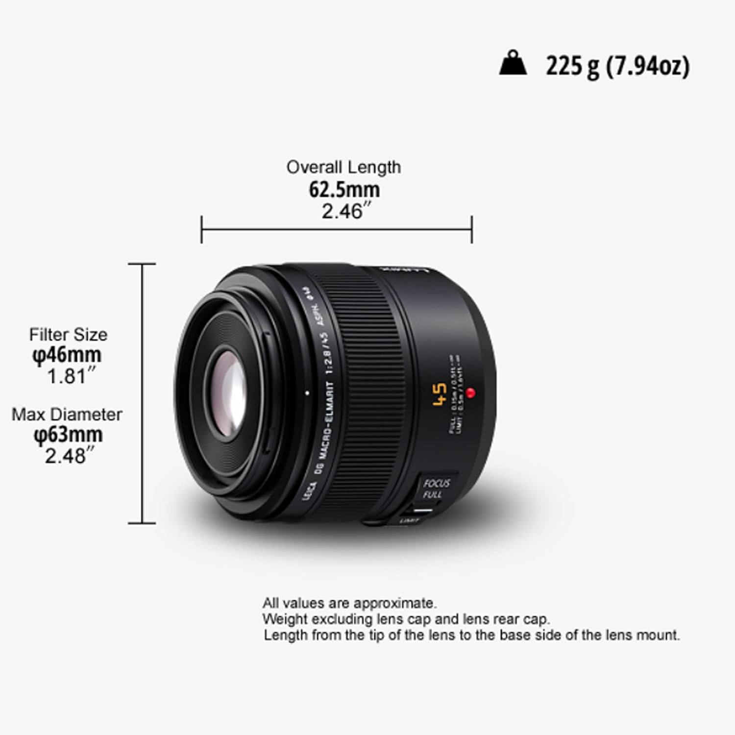 لنز پاناسونیک H-ES045E LEICA DG ELMARIT Macro 45 mm F2.8 ASPH. (لنز ماکرو با عملکرد بالا، معادل ۹۰ میلیمتر، OIS) مشکی تک