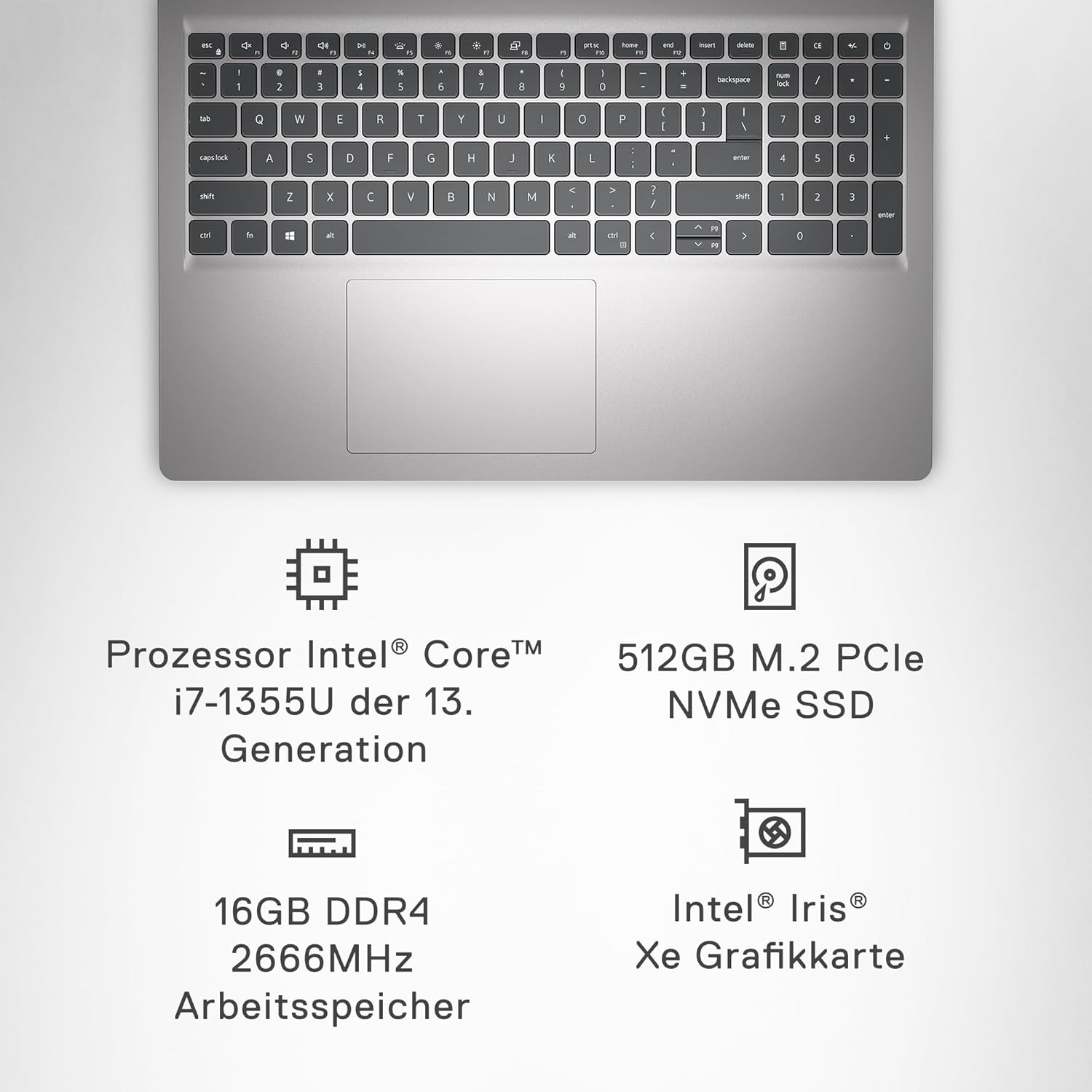 Dell Inspiron 15 3530 Laptop | 15,6" FHD 120Hz Display | Intel Core i7-1355U | 16 GB RAM | 512 GB SSD | Intel Iris Xe Graphics | Windows 11 Home | QWERTZ Tastatur | Silver i7-1355U 16 GB 512 GB | قیمت یورویی 569.31€