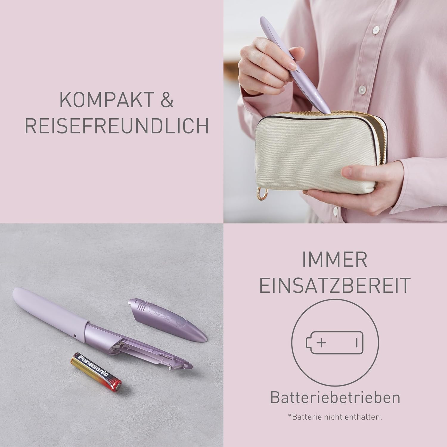 Panasonic ES-WF71-V503 Augenbrauen- und Gesichtshaartrimmer für Frauen, Augenbrauenformer, flexibler Kopf, hypoallergener Edelstahl, batteriebetrieben (AAA), Helllila