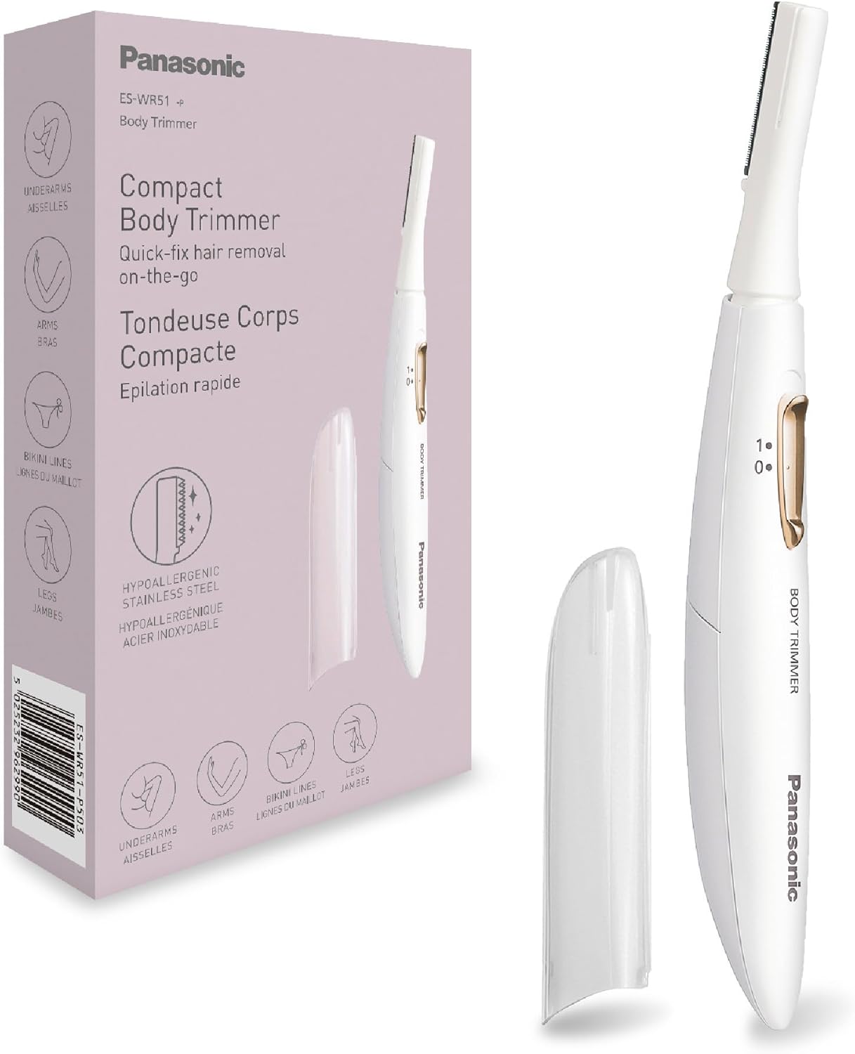 Panasonic ES-WR51 kompakter Body-Trimmer, Bikini-Trimmer, Haarentferner für Frauen, Damenrasierer, trocken, Batteriebetrieben, Epilierer, Körpertrimmer, Reinigungsbürste, Geschenk, Weiß | قیمت یورویی 19.98€