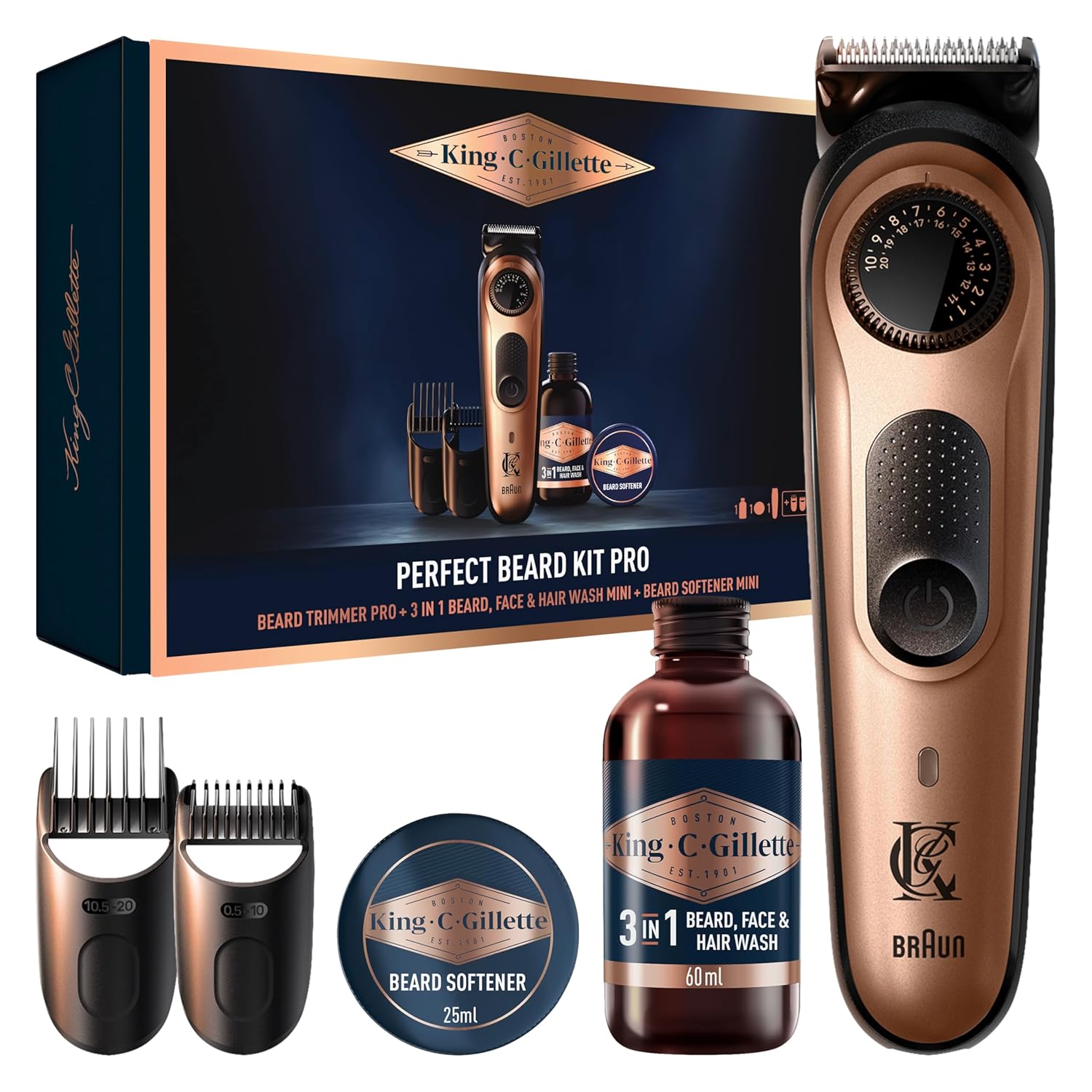 King C Gillette Elektrischer Bartschneider Herren PRO, Trimmer mit Präzisionsrad für 40 Bartlängen, Ultrascharfe, Kabelloser Bartrasierer, Inkl. Mini Bartshampoo 60ml + Mini Bartbalsam 25ml Geschenkset | قیمت یورویی 46.86€