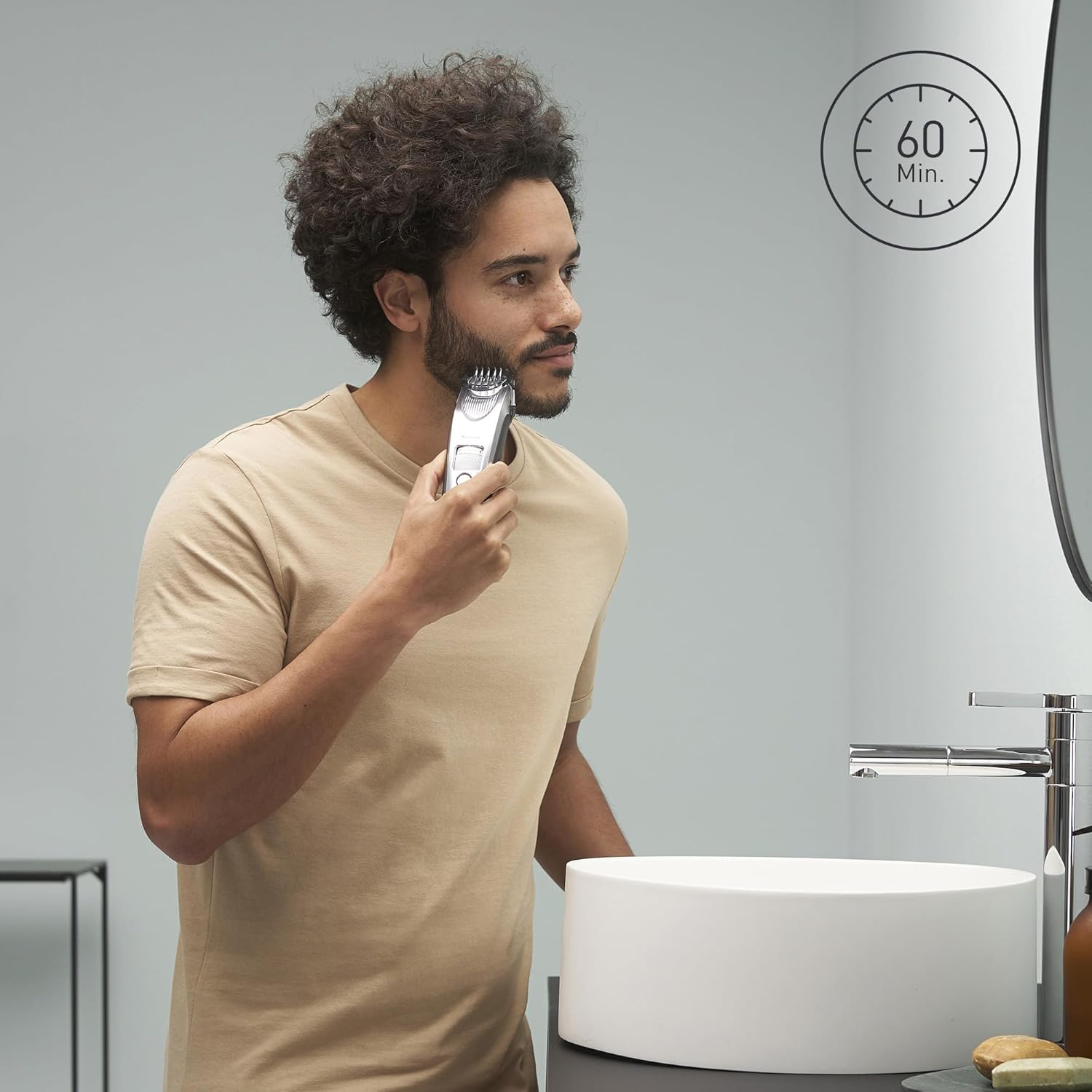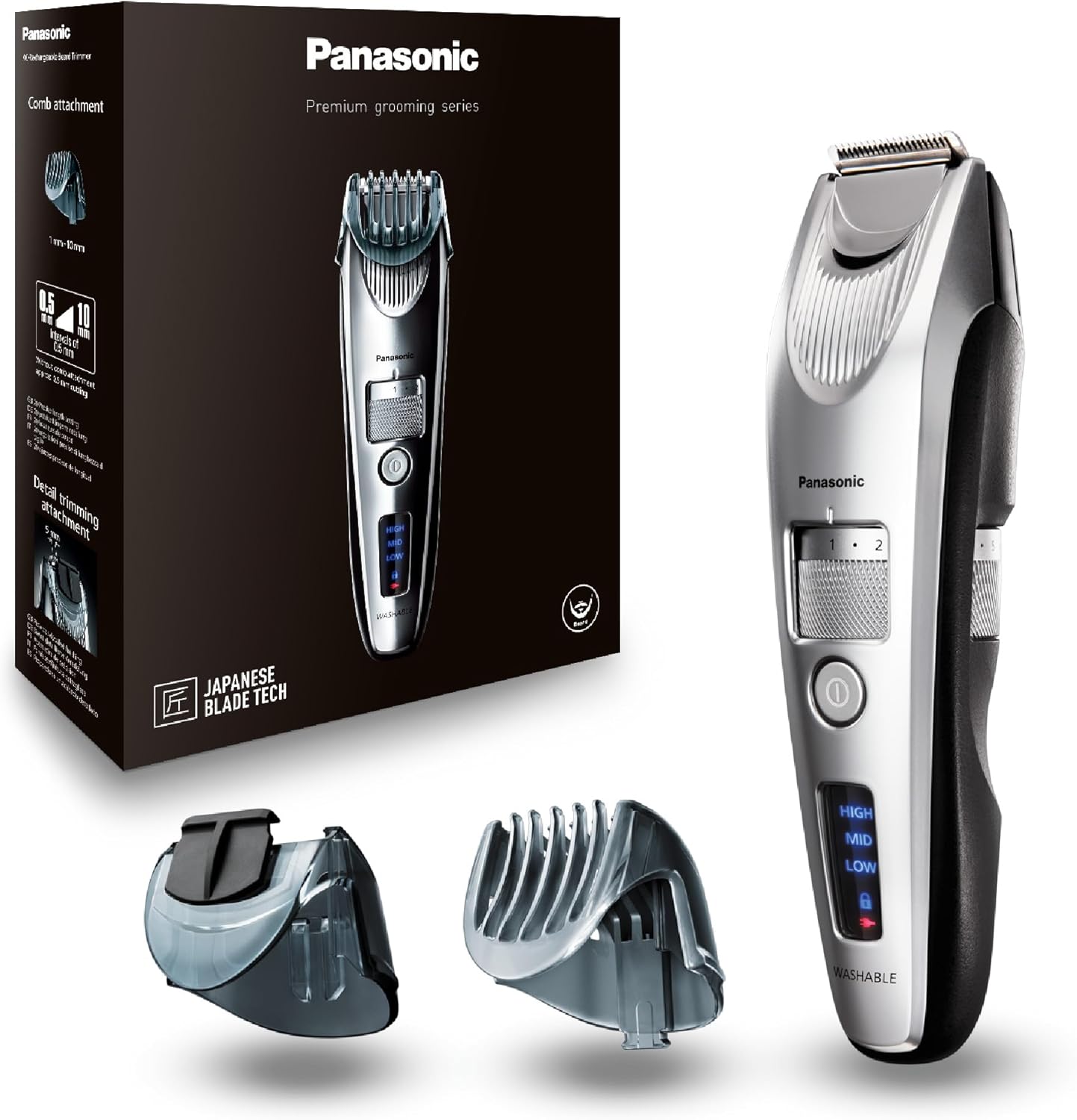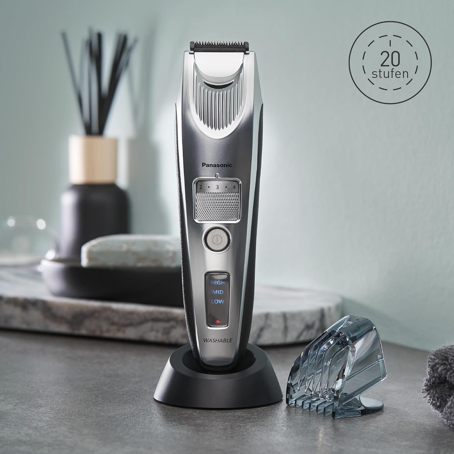 Panasonic ER-SB60-S803 Bartschneider für Männer, tragbare, wasserdichte Haarschneidemaschine, 20 Längen, 2 Aufsätze, Präzisions-Trimmer, kabelloser & kabelgebundener Betrieb, Ladestation, Silber | قیمت یورویی 119.62€