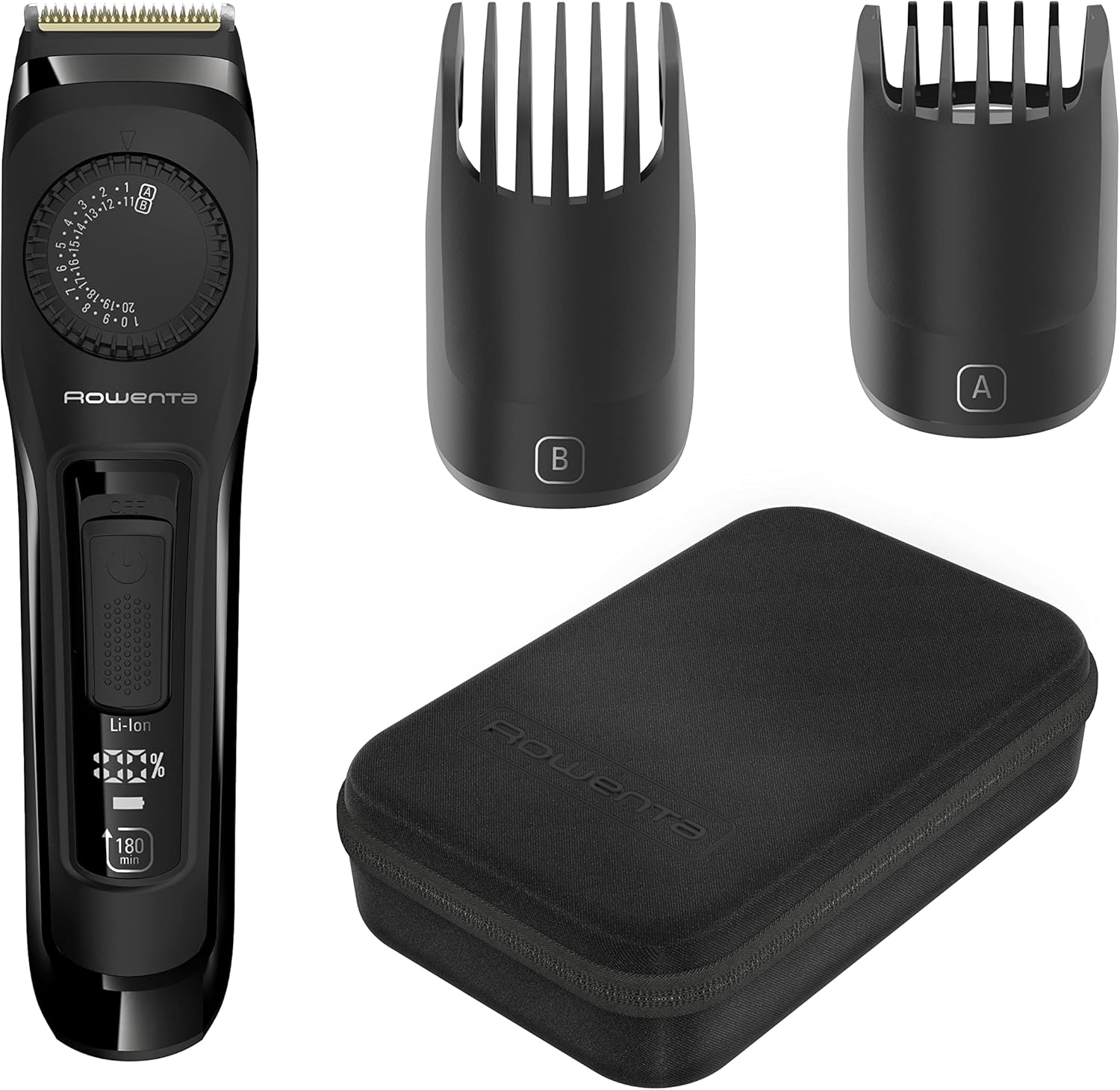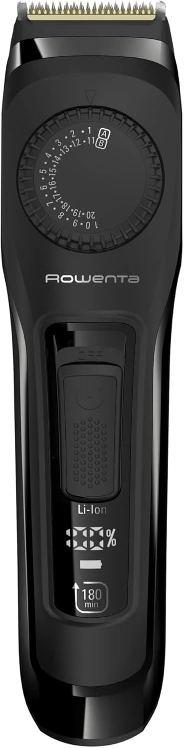 Rowenta Virtuo Bartschneider, 39 Einstellungen für jede Bartlänge (0,5 bis 20 mm), Titan-Klingen, 180 min Akkulaufzeit, Reiseetui, Schwarz, TN3841F4 Schwarz | 3 Zubehörteile