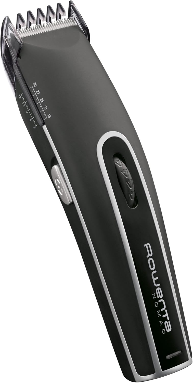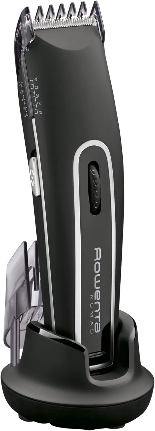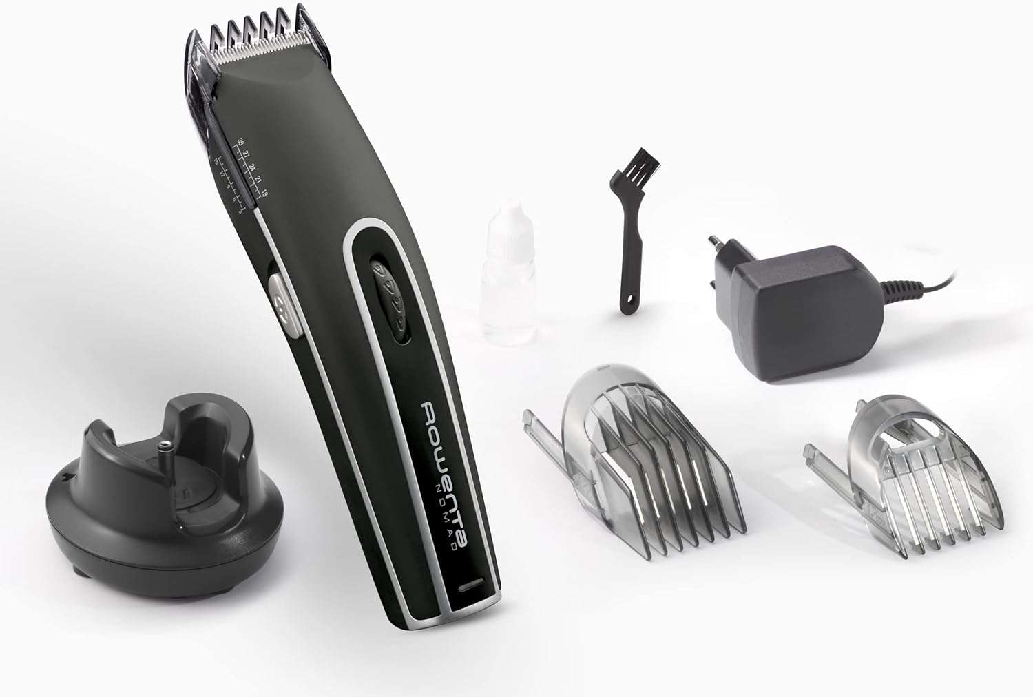 Rowenta TN1410 Haarschneider Edelstahlmesser für perfektes Styling privat oder im Salon Der Allround Akku-Haarschneider Edelstahl-Schermesser 2 längenverstellbare Aufsätze 3-15 mm und 18-30 mm, Präzisions-Einstellung 1,5 mm Akkubetrieb 40 Minuten (NiMH) Ladestation, LED Anziege, Inkl. Reinigungsbürste und Schmieröl für die Schermesser | قیمت یورویی : 21.13€