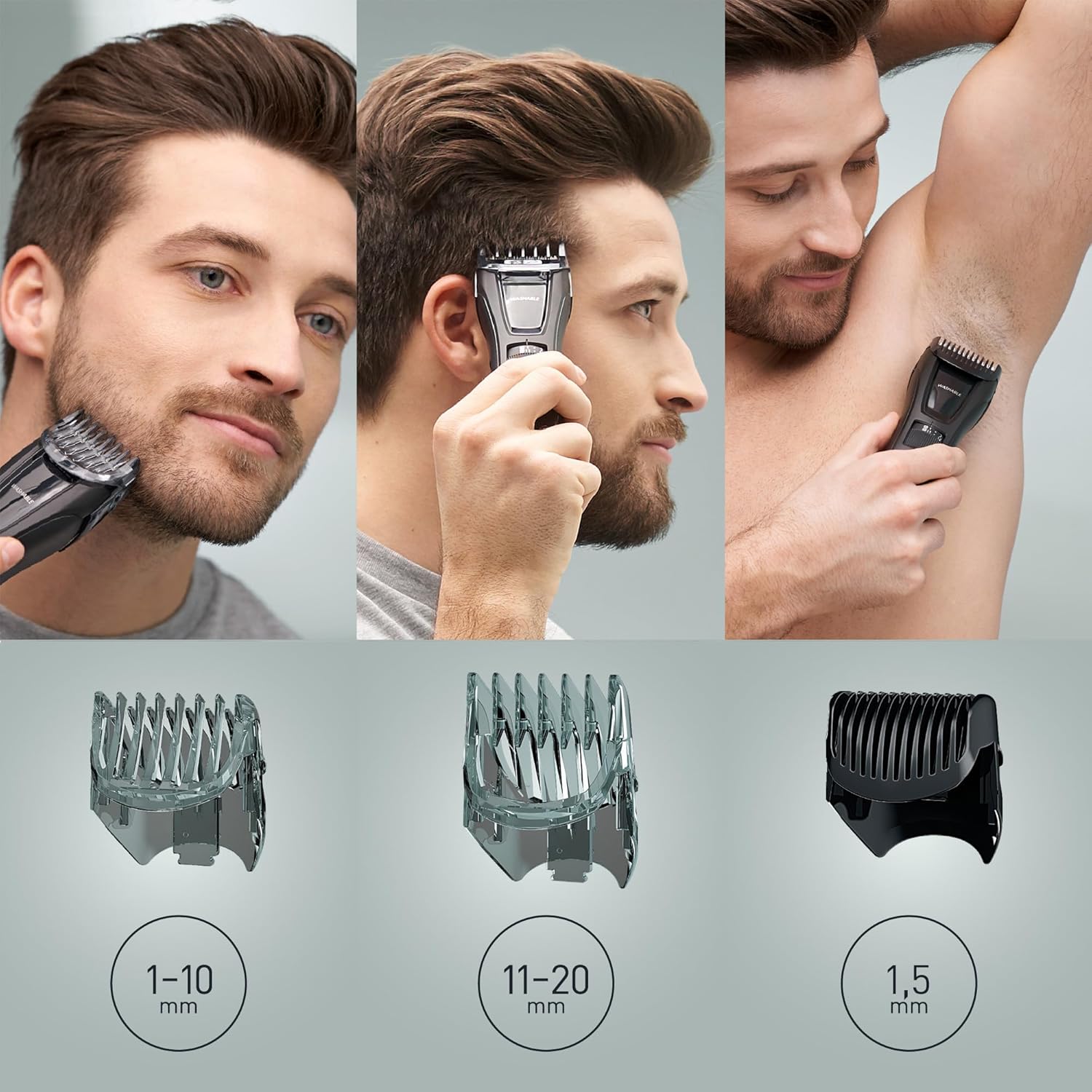 Präzises Styling für Bart, Haare und Körper Akku-/Netzbetrieb 39 Schnittlängen in 0,5 mm-Schritten Scharfer Schnitt – Dank 45° scharfer Klingen Kammaufsätze von 1- 10 mm und 11-20 mm | قیمت یورویی : 39.41€