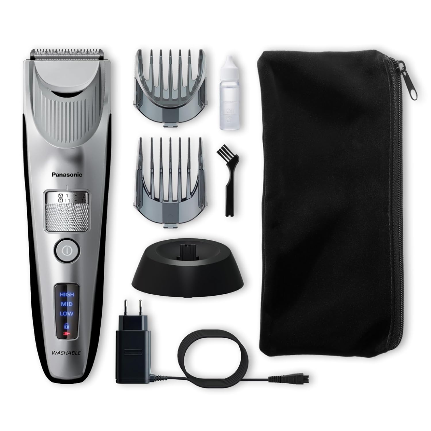 Panasonic ER-SC60-S803 Haarschneider für Männer, tragbarer, kabelloser, wasserdichter Trimmer, fortschrittliche Klingen, 20 Längen, 2 Aufsätze, kabellos & kabelgebunden, Ladestation, Silber | قیمت یورویی 99.98€