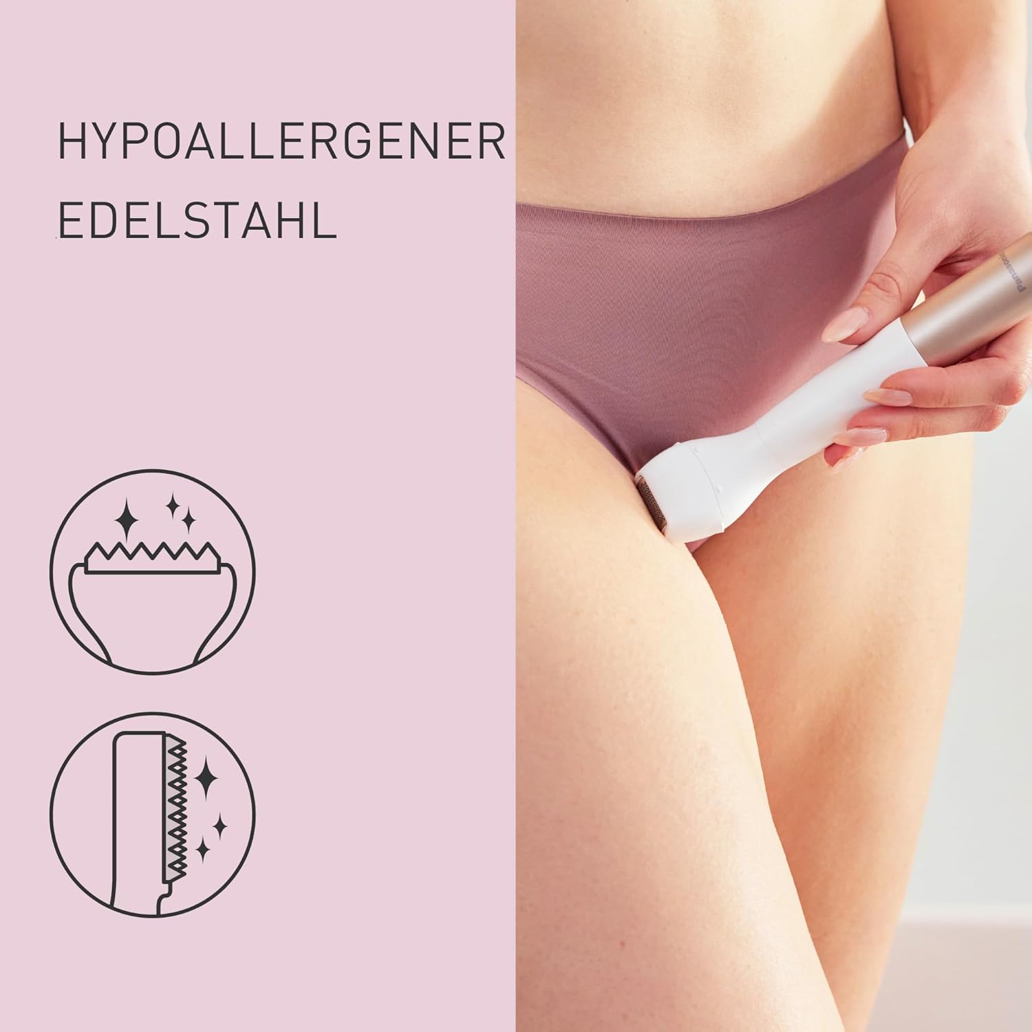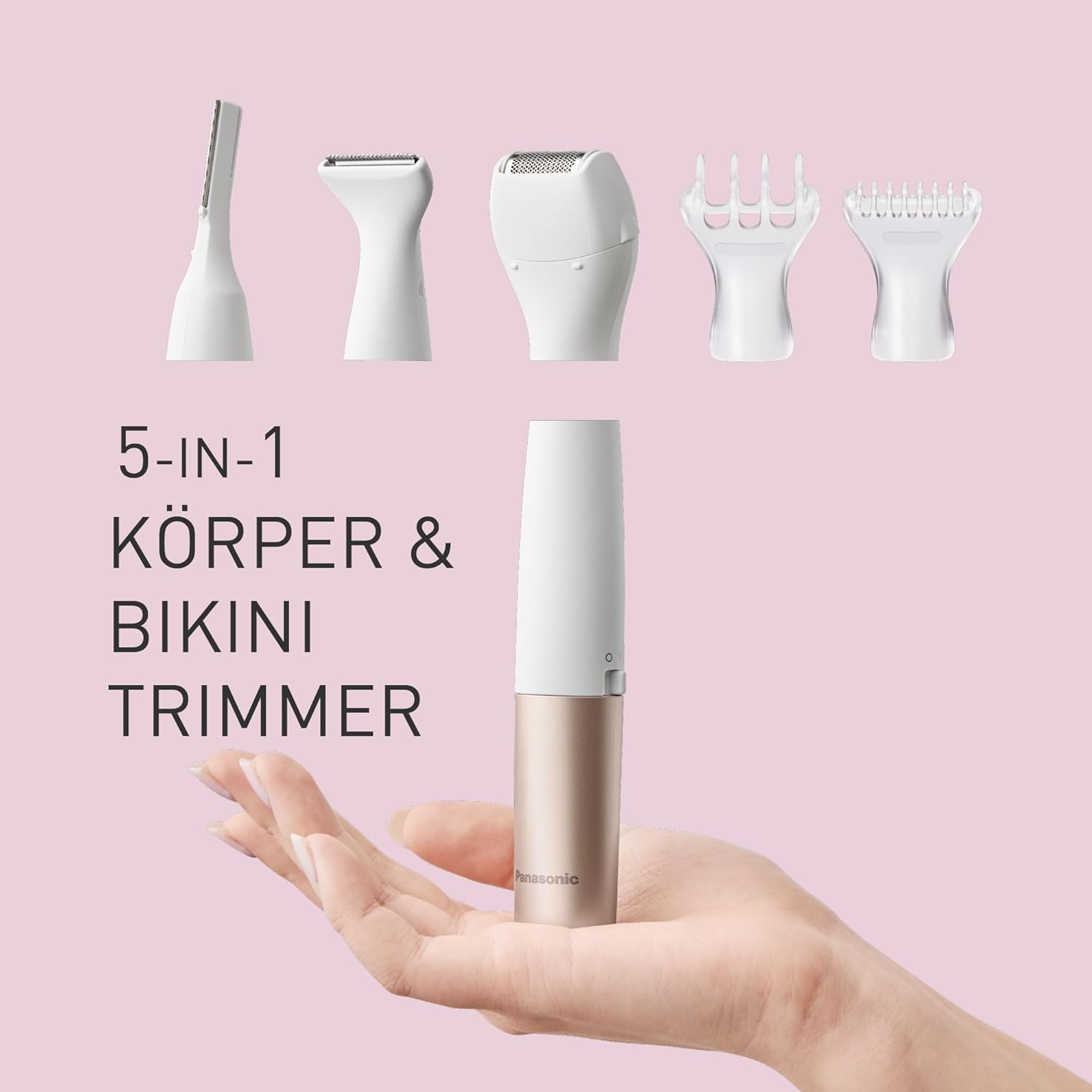 Panasonic ES-WM31 5-in-1 Multi-Trimmer Körper & Bikinizone, Haarentferner für Damen, Damenrasierer, 5 Aufsätze, IPX7 wasserdicht, nass & trocken, Batteriebetrieb (1 x AA erforderlich), Weißgold