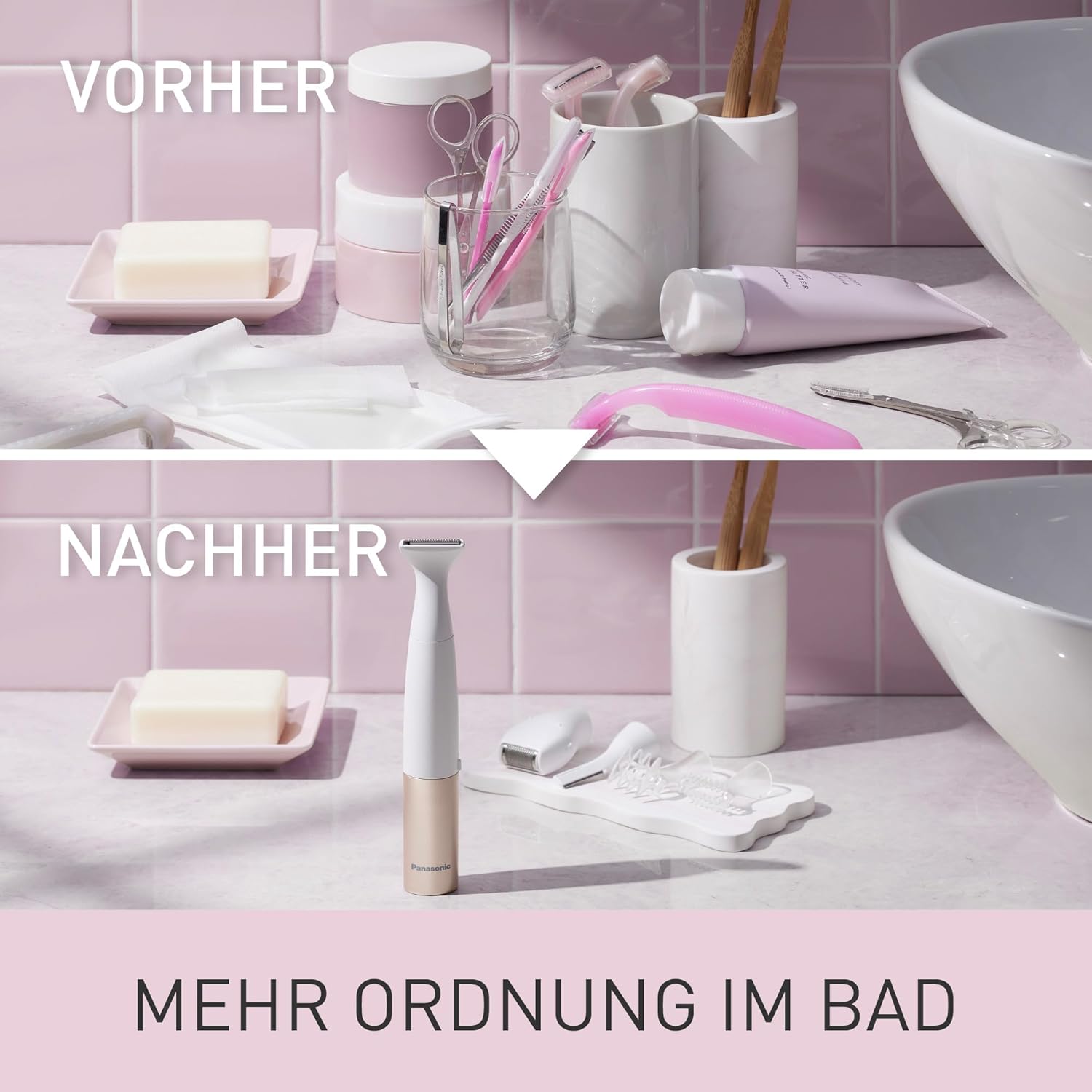 Panasonic ES-WM31 5-in-1 Multi-Trimmer Körper & Bikinizone, Haarentferner für Damen, Damenrasierer, 5 Aufsätze, IPX7 wasserdicht, nass & trocken, Batteriebetrieb (1 x AA erforderlich), Weißgold | قیمت یورویی 31.11€