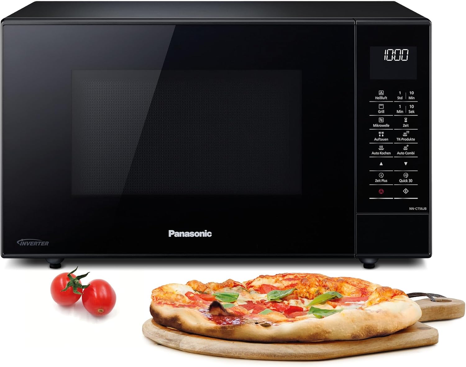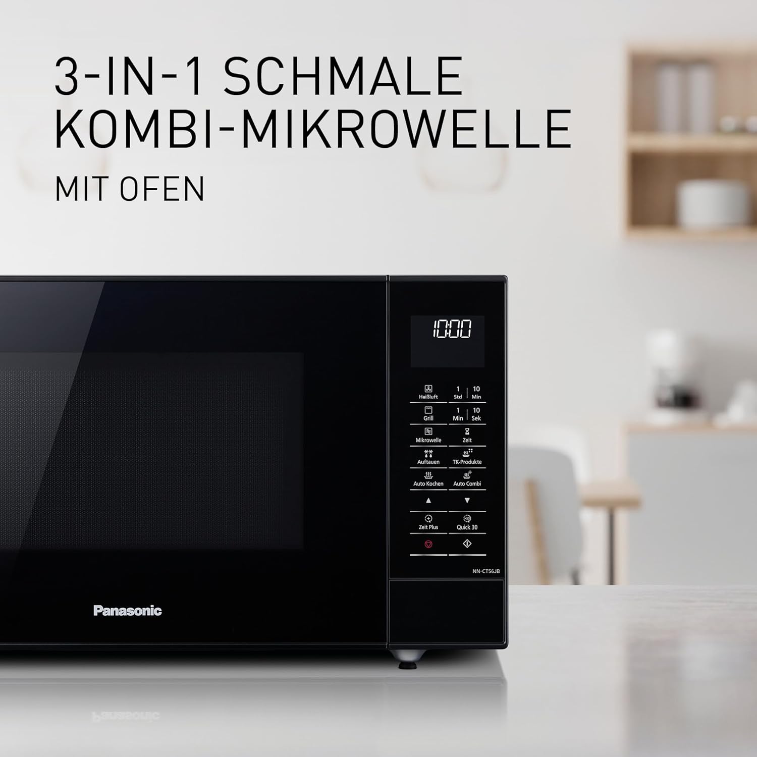 Panasonic NN-CT56JBGPG Slimline-Kombi-Mikrowellenherd mit Grill, Drehteller aus Glas, 27 l, 1000 W, 40/100–220 °C, 23 automatische Programme, Auftauen, 6 Leistungsstufen, digitale LED, Schwarz Schwarz Single | قیمت یورویی 293.96€