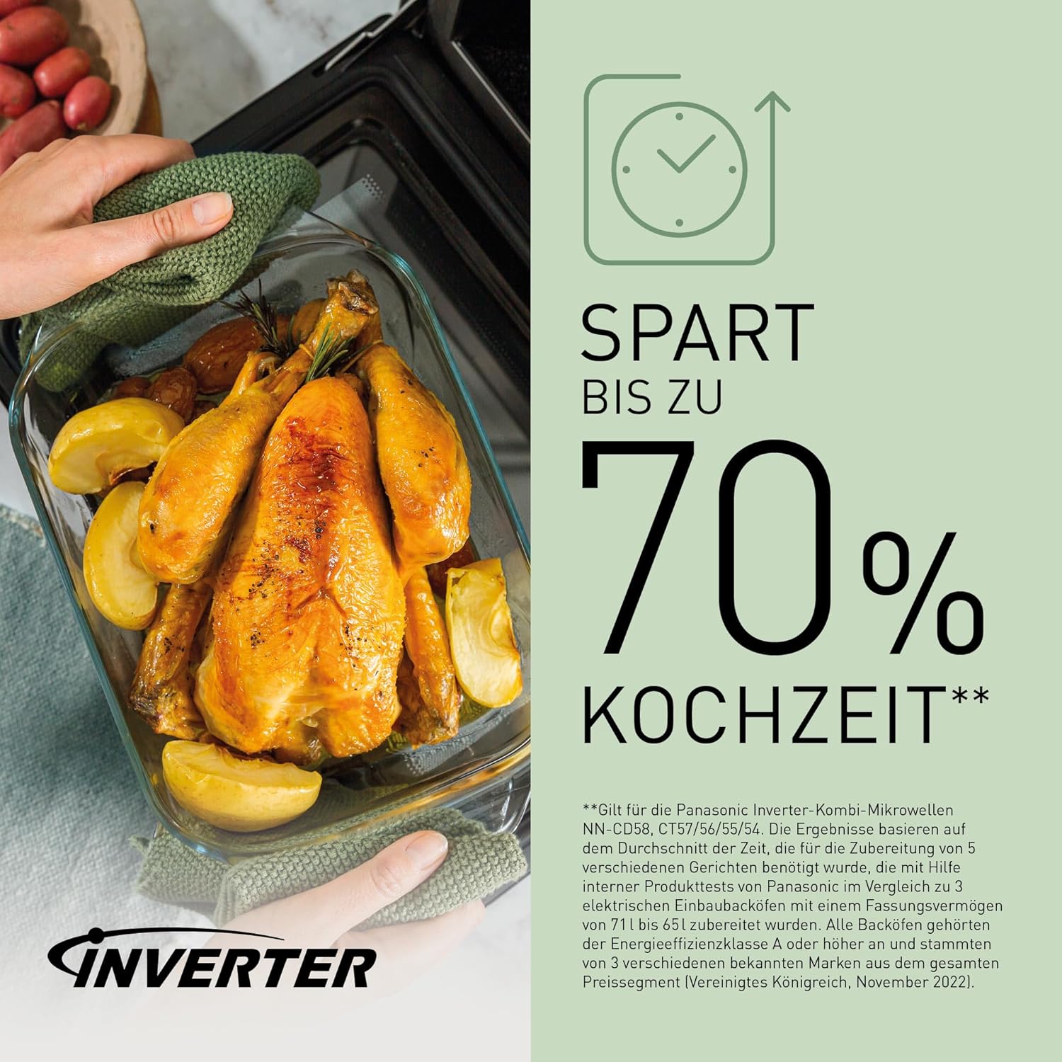 NEUE ART DES KOCHENS: Frisches und gesundes Kochen dank der Kombi-Mikrowelle von Panasonic mit Inverter-Technologie, die Konvektion, Mikrowelle und Grill kombiniert, für ein schnelles, gleichmäßiges Garen und köstliche Ergebnisse SCHLANKES DESIGN: Bis zu 20 % mehr Platz auf der Arbeitsfläche, ohne auf Funktionalität zu verzichten, dank des platzsparenden Designs dieser kompakten Mikrowelle, die perfekt zu jeder Kücheneinrichtung passt GROSSE KAPAZITÄT: Maximieren Sie Ihre Kochkünste mit dem geräumigen Fassungsvermögen von 27 Litern und dem breiten 34-cm-Glasdrehteller, der Platz ür große Gerichte und Teller für jeden Familienanlass bietet GESUNDES JUNIOR-MENÜ: Fördern Sie gesunde Essgewohnheiten mit 29 automatischen Menüprogrammen, einschließlich Junior-Menüoptionen wie Gemüsepüree, Fruchtpüree und Porridge ENERGIE SPAREN: Reduzieren Sie Ihren Energieverbrauch um bis zu 50 % im Vergleich zu herkömmlichen Einbauöfen oder Mikrowellenherden ohne Inverter-Technologie SCHNELLER KOCHEN: Beschleunigen Sie Ihr Kochen mit starker Inverter- sowie Kombinations-Kochtechnologie und reduzieren Sie die Garzeit um bis zu 70 % im Vergleich zu herkömmlichen elektrischen Einbauöfen | قیمت یورویی : 293.96€
