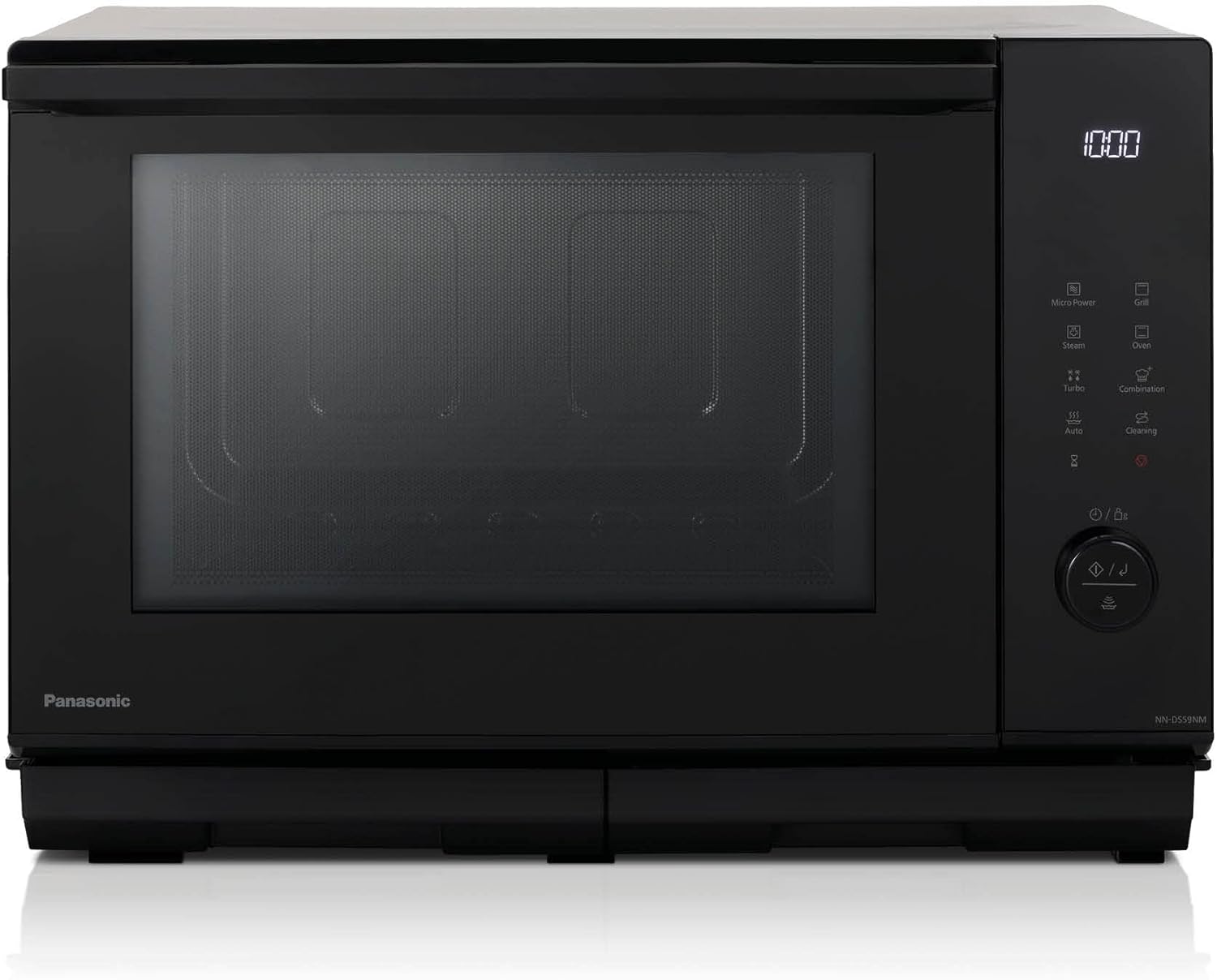 مایکروویو و گریل ترکیبی پاناسونیک NN-DS59NMETG، 4 کاره، صفحه تخت، 27 لیتر، 1000 وات، پخت دو طبقه، حسگر هوشمند، 32 برنامه اتوماتیک، سینی گریل، تمیز کردن آسان، مشکی با حرارت از بالا/پایین (محفظه پخت 27 لیتری)