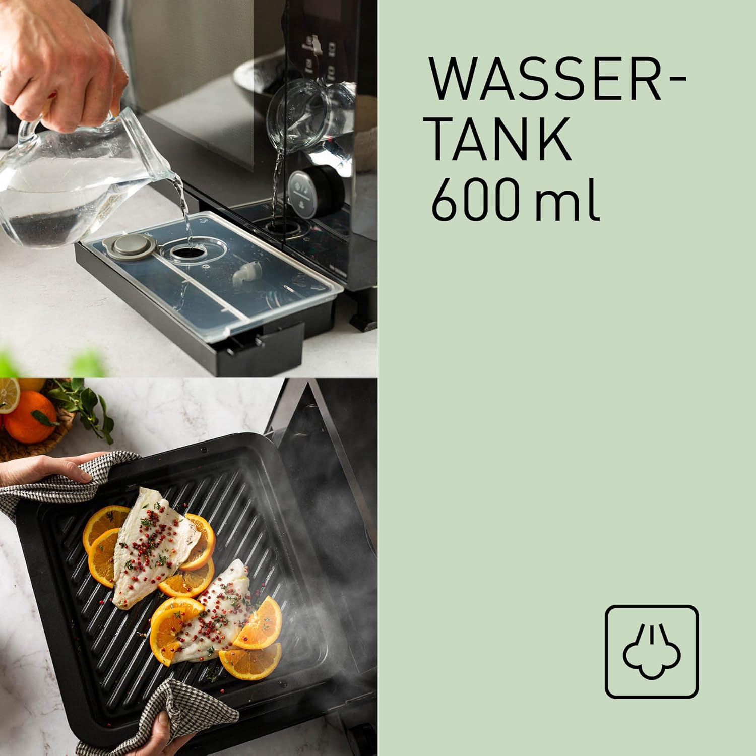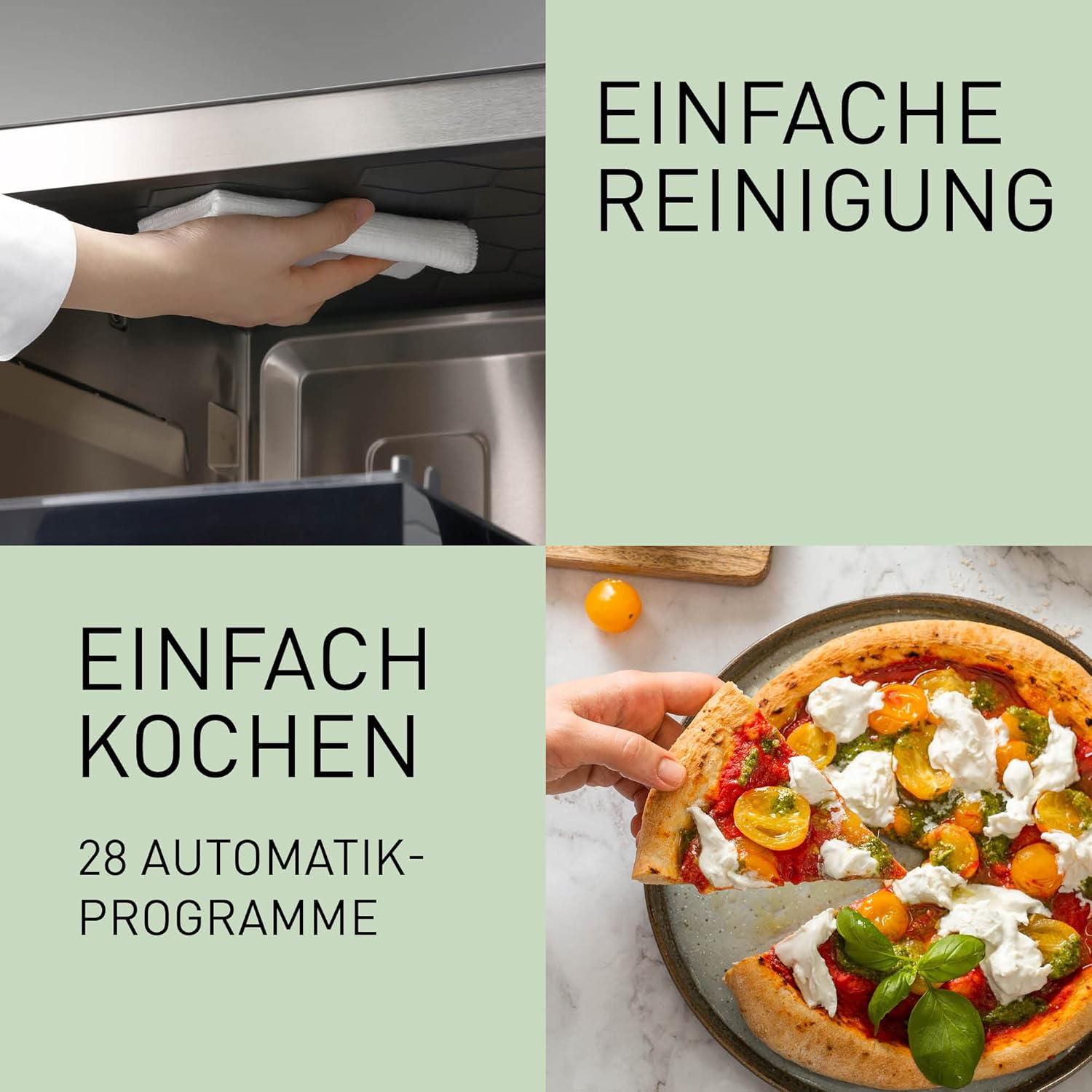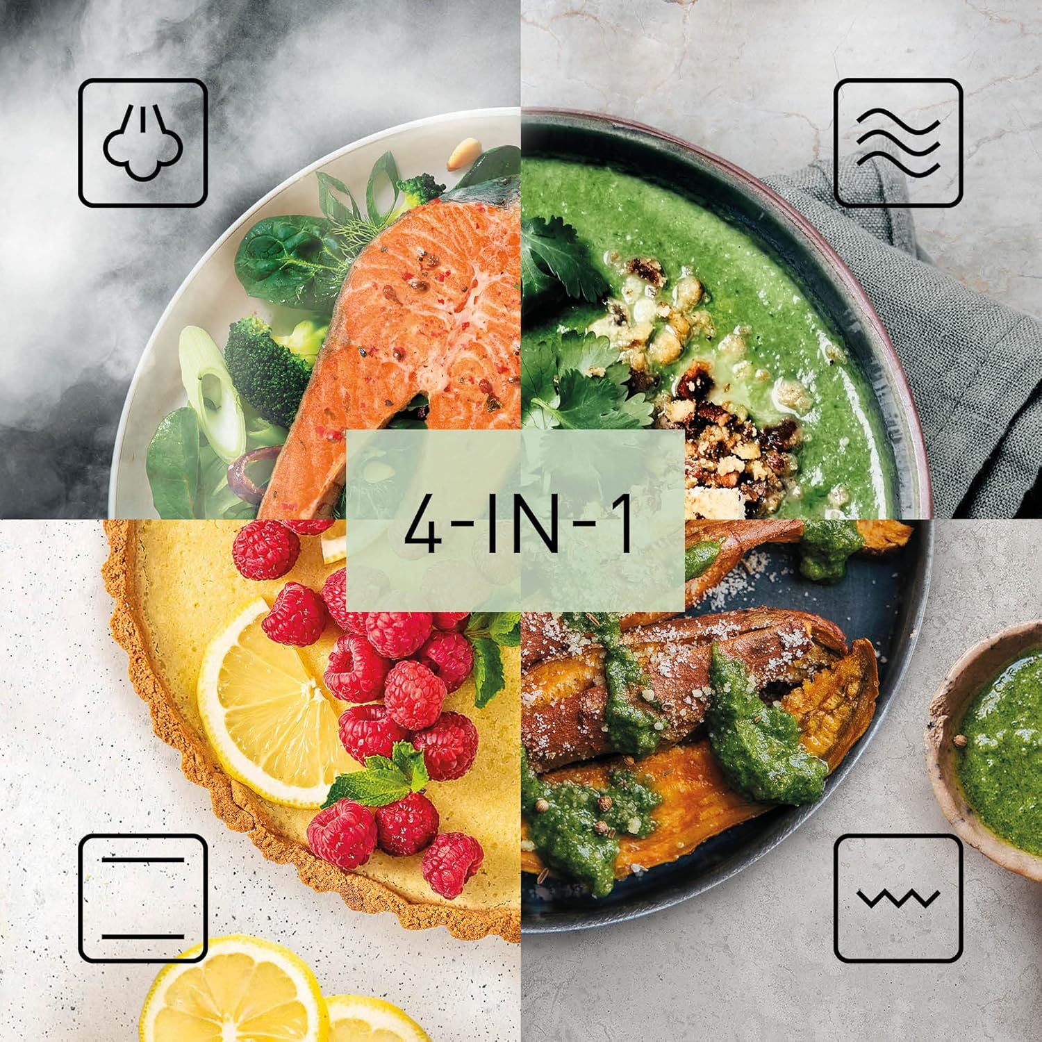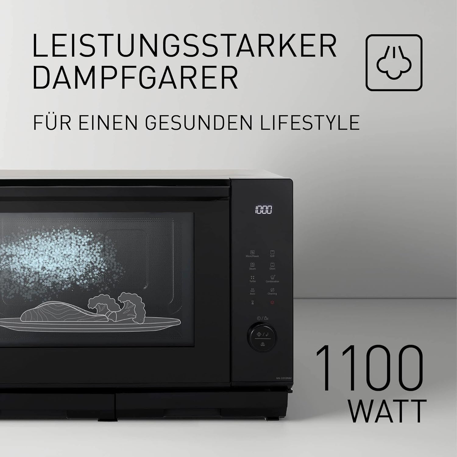 4-IN-1 POWER: Mit Dampf-, Backofen-, Grill- und Mikrowellenleistung bietet diese Kombi-Mikrowelle alles, was Sie für verschiedenste Gerichte benötigen, und spart dabei gleichzeitig Energie und Kochzeit GESUNDES DAMPFGAREN: Dieser Mikrowellenherd verfügt über einen Dampfkessel, der hochdichten Dampf nutzt, um Speisen schnell zu erhitzen und den Nährstoffgehalt zu bewahren EINZIGARTIGES GRILLFACH: Diese Mikrowelle verfügt über eine antihaftbeschichtete Grillschale, die Fett in den Rillen auffängt, Kalorien reduziert und das Essen außen knusprig und innen saftig macht 28 AUTO-PROGRAMME: 28 Auto-Programme, die über das Bedienfeld, das Drehrad und das LCD-Display zugänglich sind. Für mehr Flexibilität mit Optionen wie Defrost und Auto Cook BROT AUFBACKEN: Die Mikrowelle kombiniert Konvektions-, Mikrowellen- und Grilltechnologie, um Brote, Croissants, Brötchen und andere Backwaren, die ihre Frische verloren haben, erneut aromatisch und knusprig aufzubacken EINFACHE REINIGUNG: Vier Auto-Dampfreinigungsprogramme, einschließlich Hohlraum- und Systemreinigung, Wasserablass und Desodorierung, machen die Reinigung zum Kinderspiel, Flache Innenflächen ermöglichen ein einfaches Abwischen | قیمت یورویی : 505€