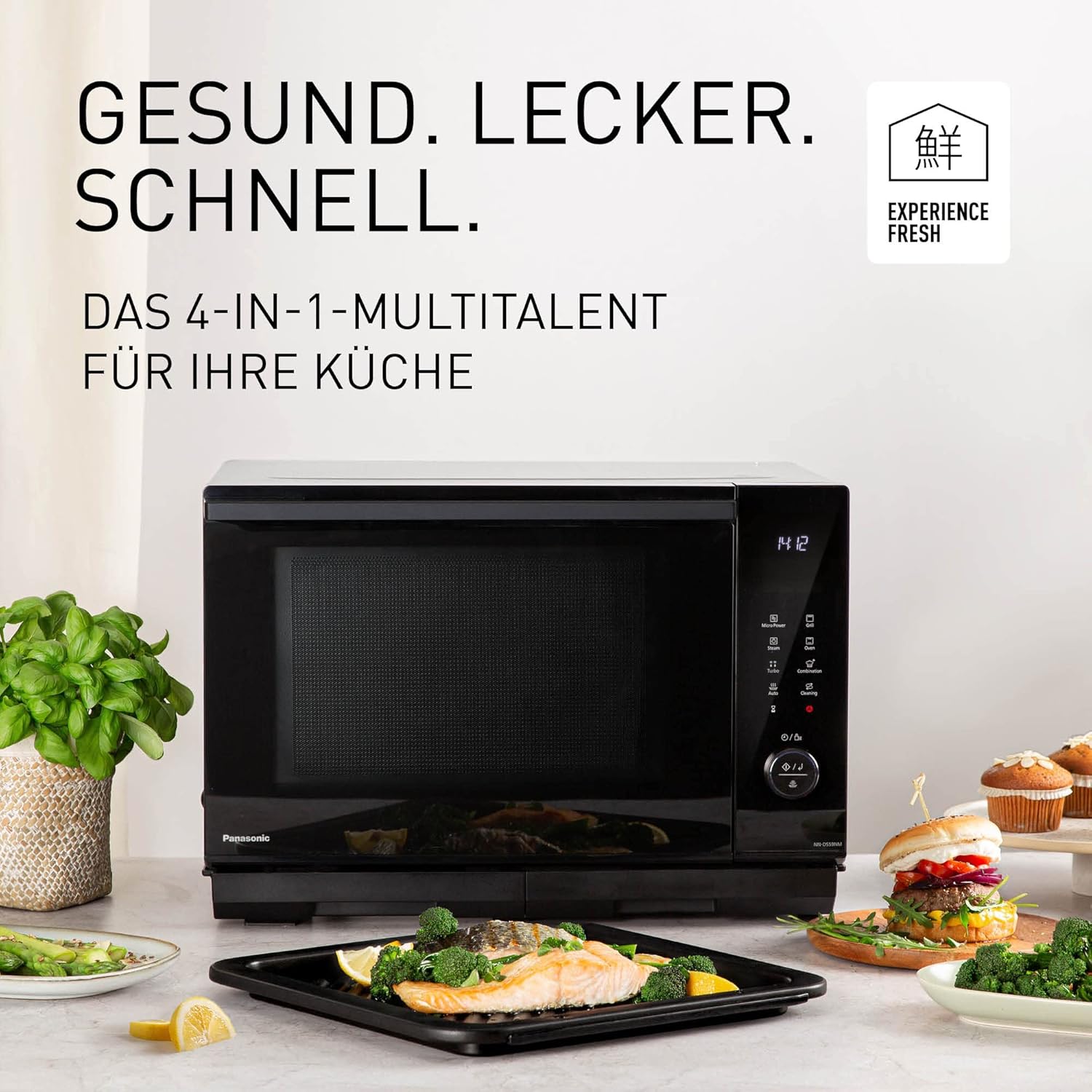Panasonic NN-DS59NMETG 4-in-1-Kombination aus Mikrowelle & Grill, Flachbett, 27 Liter, 1000 W, Garen auf zwei Ebenen, Genius-Sensor, 32 automatische Programme, Grillschale, leicht zu reinigen, Schwarz mit Ober-/Unterhitze (27L Garraum) | قیمت یورویی 505€