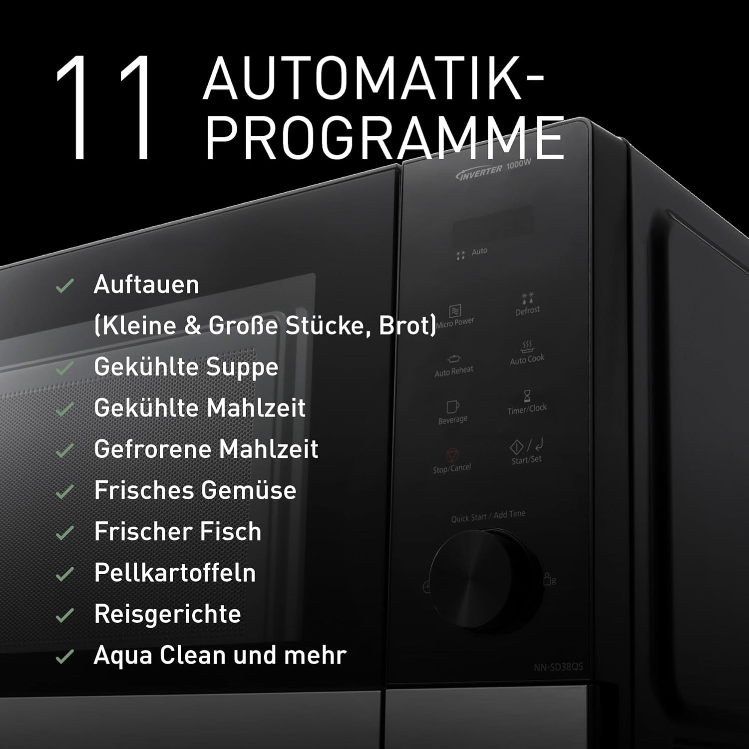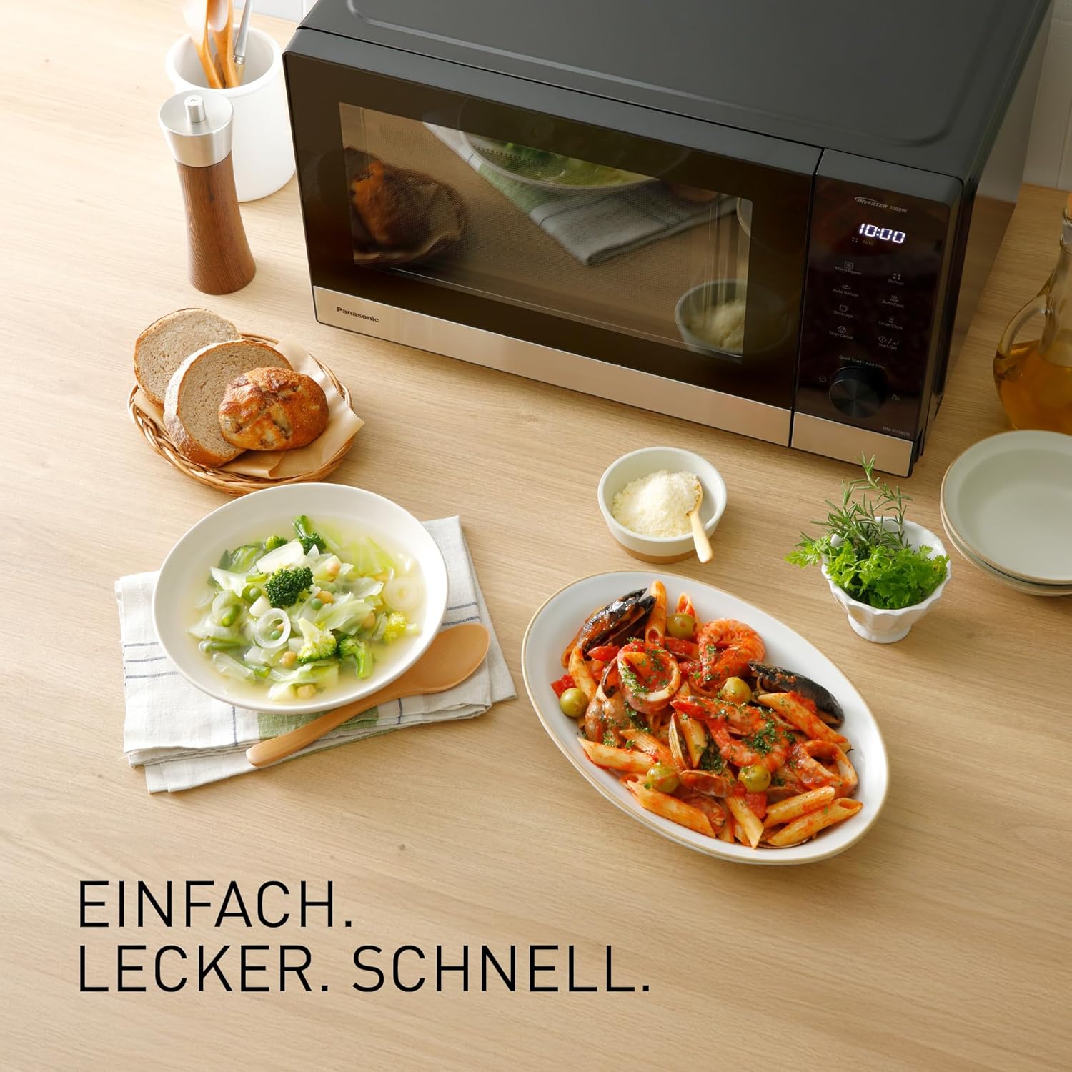 مایکروویو پاناسونیک مدل NN-SD38QSEPG، 29 لیتر، 1000 وات، یخزدایی خودکار، 11 برنامه خودکار، تایمر، مشکی و استیل ضد زنگ (بدون لوازم جانبی بخارپز، بدون عملکرد گریل)