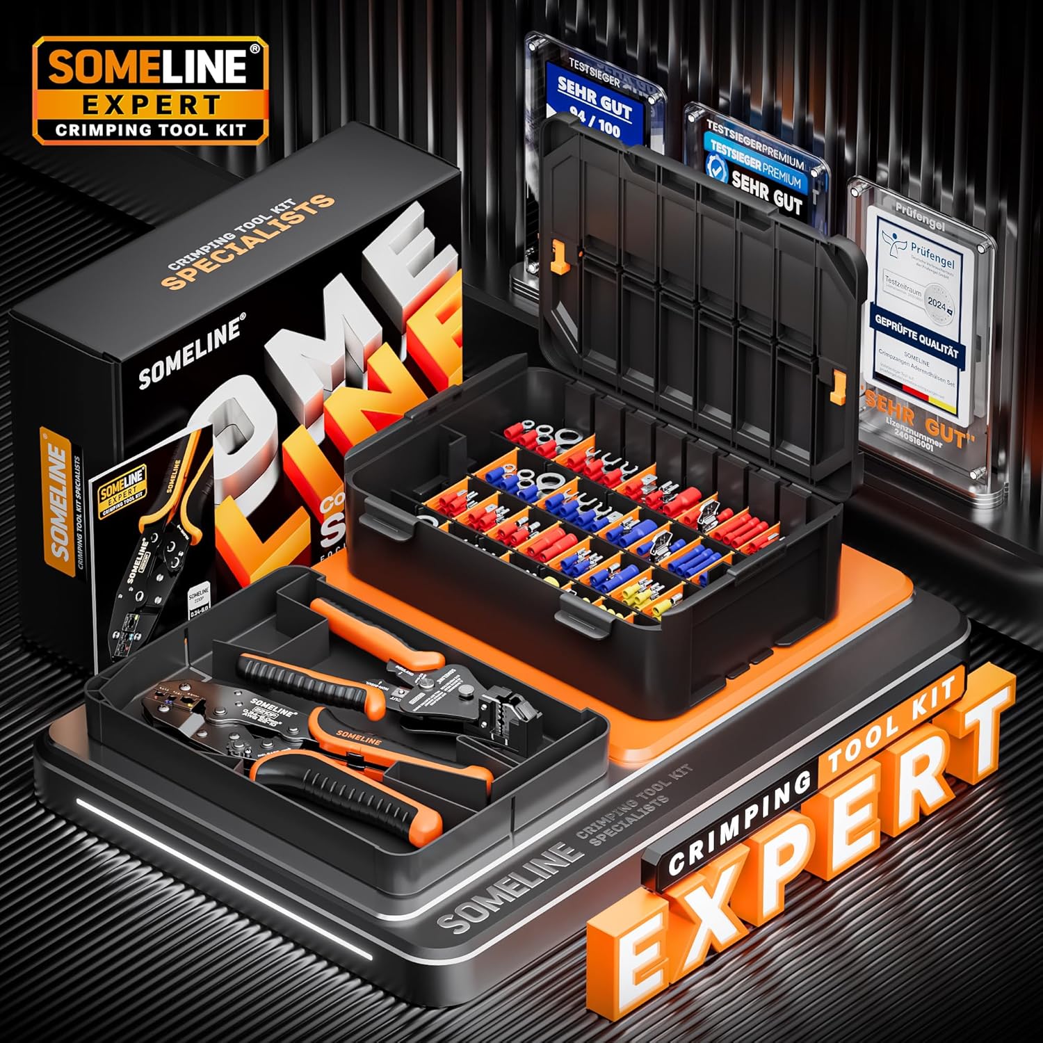 SOMELINE Crimpzange Kabelschuhe Set, 51 Arten [0,34–6 mm²] Kabelschuhe, mit Kabelschuhzange und Automatischer Abisolierzange, Kabelschuhe Set – Crimpzange – Crimpzange Set 51 Typen + 2 Werkzeuge (Version A) | قیمت یورویی 54.98€