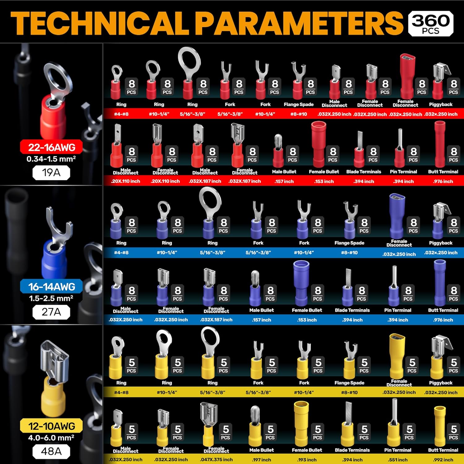 Professionelle Crimpzange: Die Crimpzange verfügt über einen effizienten Ratschenmechanismus und professionelle Crimpbacken. Mit einstellbarer Crimpkraft und Schnellverschluss. Ergonomischer, rutschfester Griff Automatische Abisolierzange: für 0,25–6 mm² Kabel, sorgt für präzises, schnelles und einfaches Abisolieren der Drähte und verbessert die Effizienz der Elektroarbeiten 51 Typen Kabelschuhe: für Kabel 0,34–6 mm². Kabelschuh Typen: Ring, Gabelform, Stift, Stoßverbinder, Flachstecker, Flachsteckhülsen, Flachsteckhülsen mit Abzweig, Rundstecker, Rundsteckhülsen Eigenschaften: Verzinntes Kupfer hat eine ausgezeichnete Leitfähigkeit und Korrosionsbeständigkeit, mit verschleißfester PVC-Isolierschicht. Hohe Temperaturbeständigkeit (75°C) Verwendung: Weit verbreitet in elektronischen Geräten, Kfz-Kabelbäumen, industriellen Steuerungen, Haushaltsgeräten, neuen Energiesystemen und anderen Szenarien. Durch die Kombination von Haltbarkeit und Sicherheit ist es eine zuverlässige Wahl für die Verbindung von Niederspannungsschaltungen Stapelbare Aufbewahrungsbox: Einzigartig gestaltete doppellagige stapelbare Aufbewahrungsbox, leicht zu tragen und zu organisieren, sorgt dafür, dass Werkzeuge ordentlich bleiben und leicht zugänglich sind, ideal für professionelle Techniker und Hobby-Heimwerker | قیمت یورویی : 54.98€