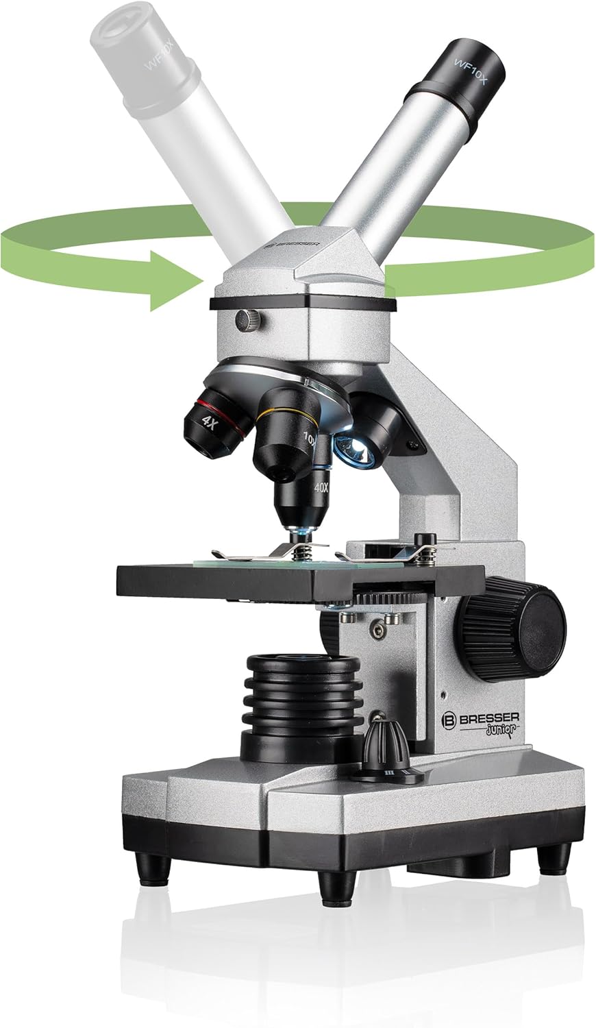 Bresser Mikroskop BIOLUX CA 40x-1024x Mikroskop Set mit Auflicht- und Durchlichtbeleuchtung inklusive Smartphone Kamera Halter, umfangreichem Zubehörpaket und stabilem Transportkoffer Single لینک آمازون : https://www.amazon.de/dp/B007JVXSWU?th=1&psc=1 این میکروسکوپ تک چشمی با کیفیت بالا با روشنایی LED، بزرگنمایی بالا و لوازم جانبی گسترده، برای مبتدیان در دنیای میکروسکوپ ایدهآل است. به لطف روشنایی باتریدار، برای استفاده سیار نیز مناسب است. پایه شیئی با قابلیت تنظیم ارتفاع، اشیاء مورد بررسی را با نور عبوری و بازتابی به طور بهینه روشن میکند و بزرگنمایی تا 1024 برابر با چشمیهای موجود قابل دستیابی است. لنز بارلوی کشویی امکان زوم بدون وقفه را فراهم میکند و آداپتور گوشی هوشمند موجود در بسته به شما امکان میدهد از اشیاء مورد بررسی عکسهای خودتان را بگیرید. همه چیز به طور مرتب در کیف حمل کاربردی جای میگیرد. ابعاد: ۱۴۵x۱۰۰x۲۹۰ میلیمتر / وزن: ۱.۲۴ کیلوگرم؛ با ۳ باتری قلمی کار میکند (در بستهبندی موجود است) اقلام همراه: میکروسکوپ؛ کیف حمل؛ نگهدارنده گوشی هوشمند؛ ۲ عدد چشمی (WF10x، WF16x)؛ ۳ عدد عدسی شیئی (۴x، ۱۰x، ۴۰x)؛ لنز بارلو؛ لام؛ لامل (هر کدام ۵ عدد)؛ پیپت؛ محیط نصب؛ میکروتوم؛ کیت پرورش میگو (آرتمیا)؛ باتری؛ دفترچه راهنما