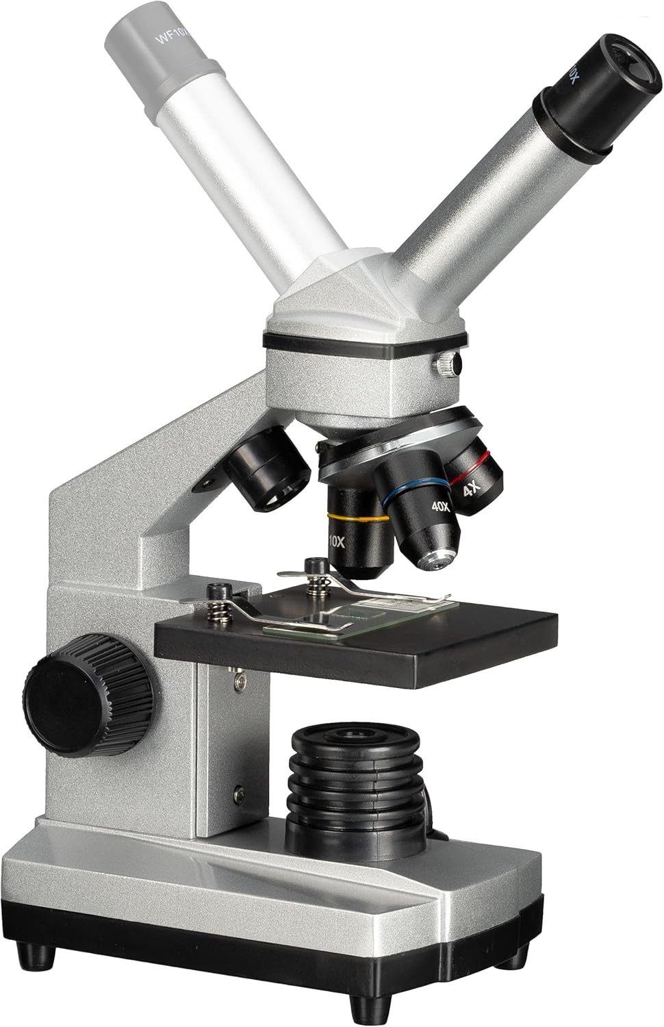 Bresser Junior Mikroskop Set 40x-1024x mit USB Kamera und heller LED-Beleuchtung für Durchlichtbeobachtungen inklusive reichhaltigem Zubehörpaket und stabilem Hartschalenkoffer Inklusive Hartschalenkoffer Single لینک آمازون : https://www.amazon.de/dp/B001UJE4XY?th=1&psc=1 این میکروسکوپ سطح مبتدی با کیفیت بالا، دارای طراحی کلاسیک، روشنایی LED و بزرگنمایی بالا است. این میکروسکوپ مجهز به چشمی USB برای اتصال به کامپیوتر است و اولین نگاه را به دنیای میکروسکوپ ارائه میدهد. چشمیهای موجود در بستهبندی، بزرگنمایی ۴۰ تا ۱۰۲۴ برابر را ارائه میدهند و اتصال تکچشمی امکان اتصال دوربین چشمی USB و مشاهده و ویرایش در رایانه را فراهم میکند. نورپردازی LED درخشان با نور منعکس شده و عبوری، روشنایی بهینه اشیاء را تضمین میکند و با لوازم جانبی گسترده شامل نمونههای فراوان، میتوانید فوراً شروع به کار کنید. ابعاد: ۱۵۳x۲۶۷x۱۰۰ میلیمتر / وزن: ۲.۷ کیلوگرم؛ دستگاه از طریق دوشاخه برق (در بستهبندی موجود است) تغذیه میشود. محدوده تحویل: میکروسکوپ؛ چشمی USB؛ ۵ اسلاید و ۵ لامل؛ محل تکثیر میگو؛ محیط نصب؛ چشمیهای میدان دید وسیع؛ جعبه سخت؛ پیپت، موچین، میکروتوم؛ پوشش گرد و غبار؛ مخمر، نمک دریا، تخم میگو؛ لنز بارلو؛ منبع تغذیه