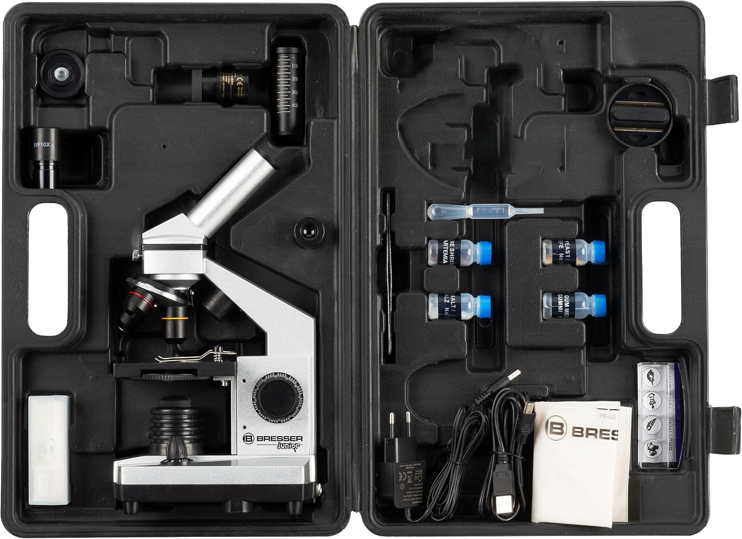 Bresser Junior Mikroskop Set 40x-1024x mit USB Kamera und heller LED-Beleuchtung für Durchlichtbeobachtungen inklusive reichhaltigem Zubehörpaket und stabilem Hartschalenkoffer Inklusive Hartschalenkoffer Single | قیمت یورویی 109.9€