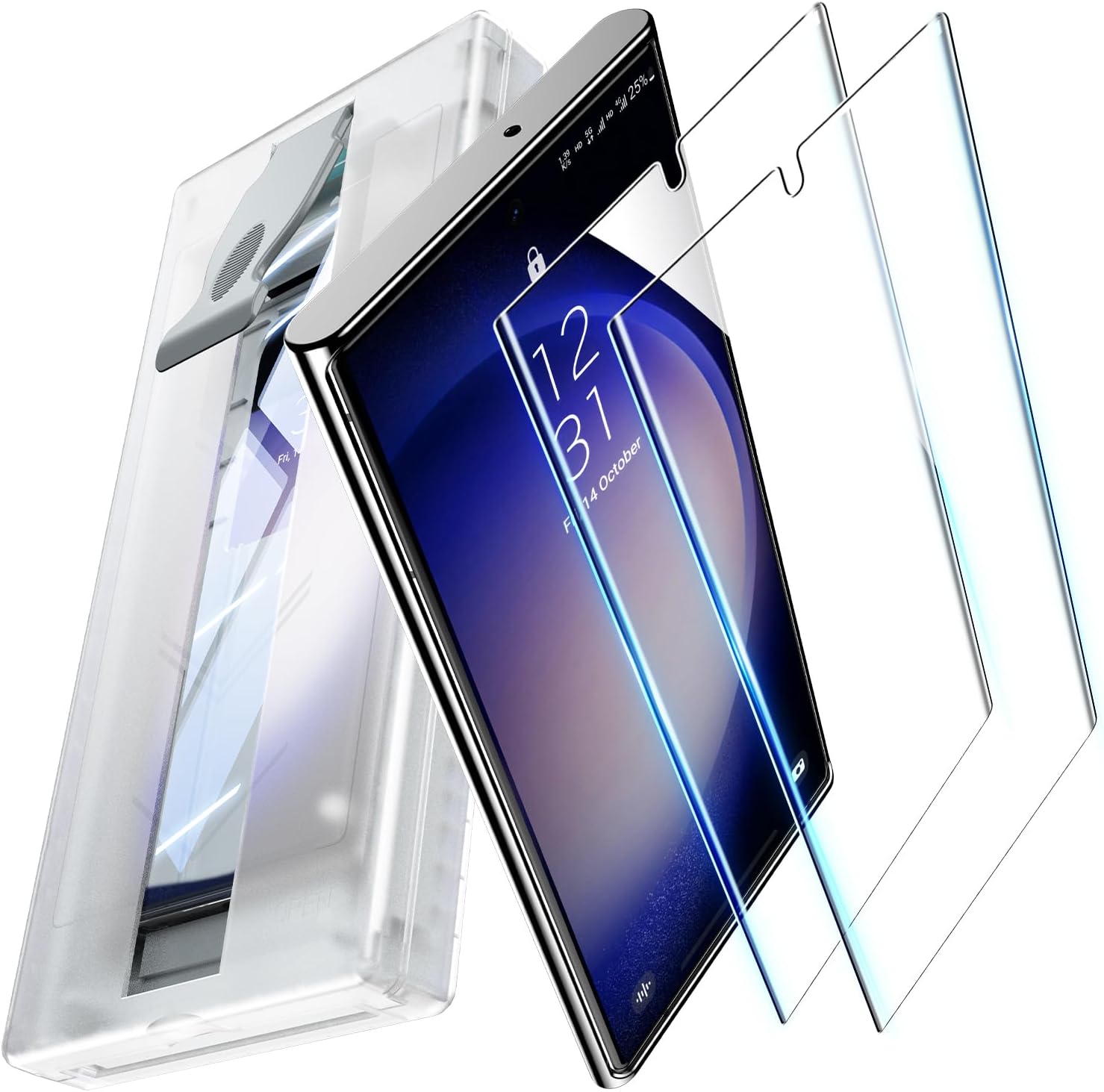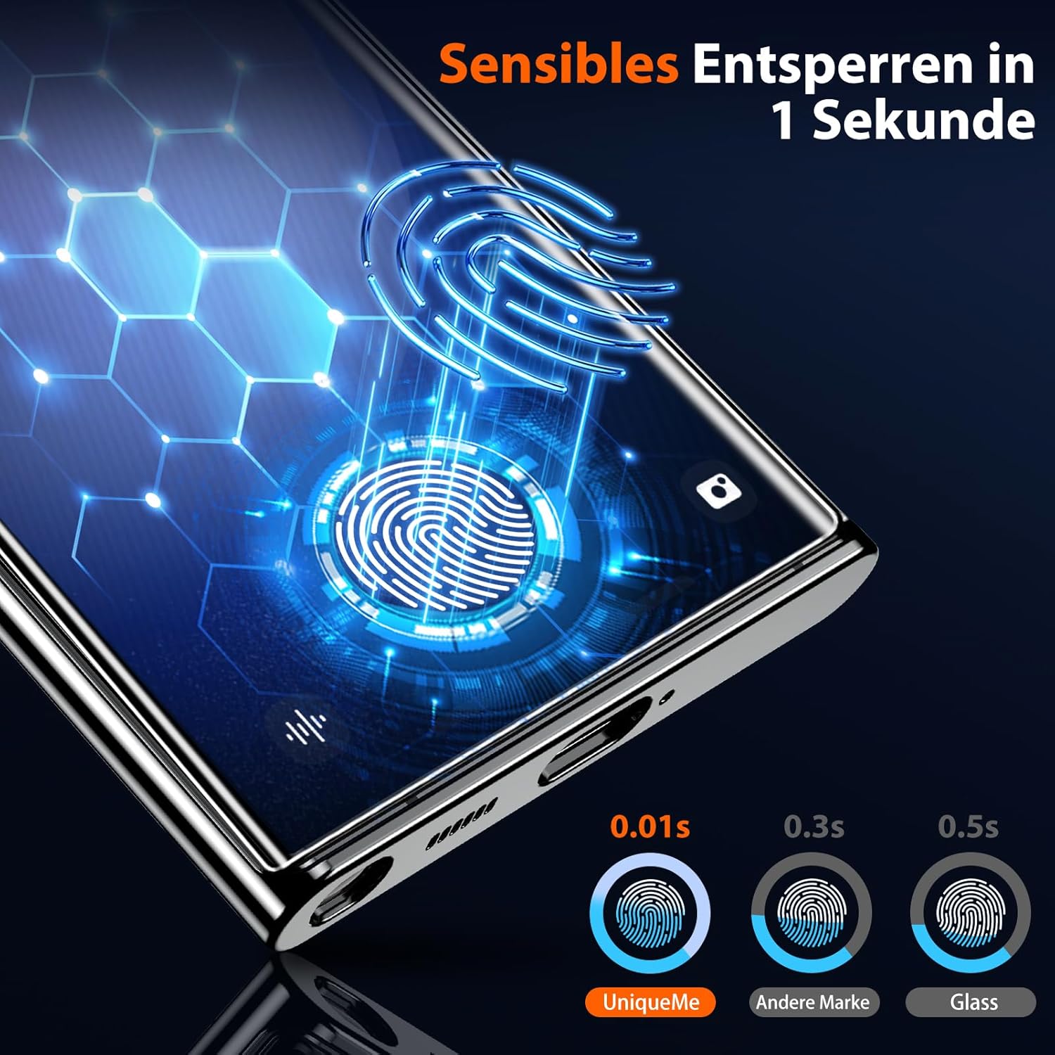 UniqueMe Folie für Samsung Galaxy S22 Ultra/S23 Ultra Schutzfolie, 2 Stück 7H Samsung S22 Ultra/S23 Ultra Displayschutz,[Fingerabdruck-ID Unterstützen][3D-Vollabdeckung],Blasenfreie Installation 2*Panzerfolie mit Einbauwerkzeug | قیمت یورویی 21.65€