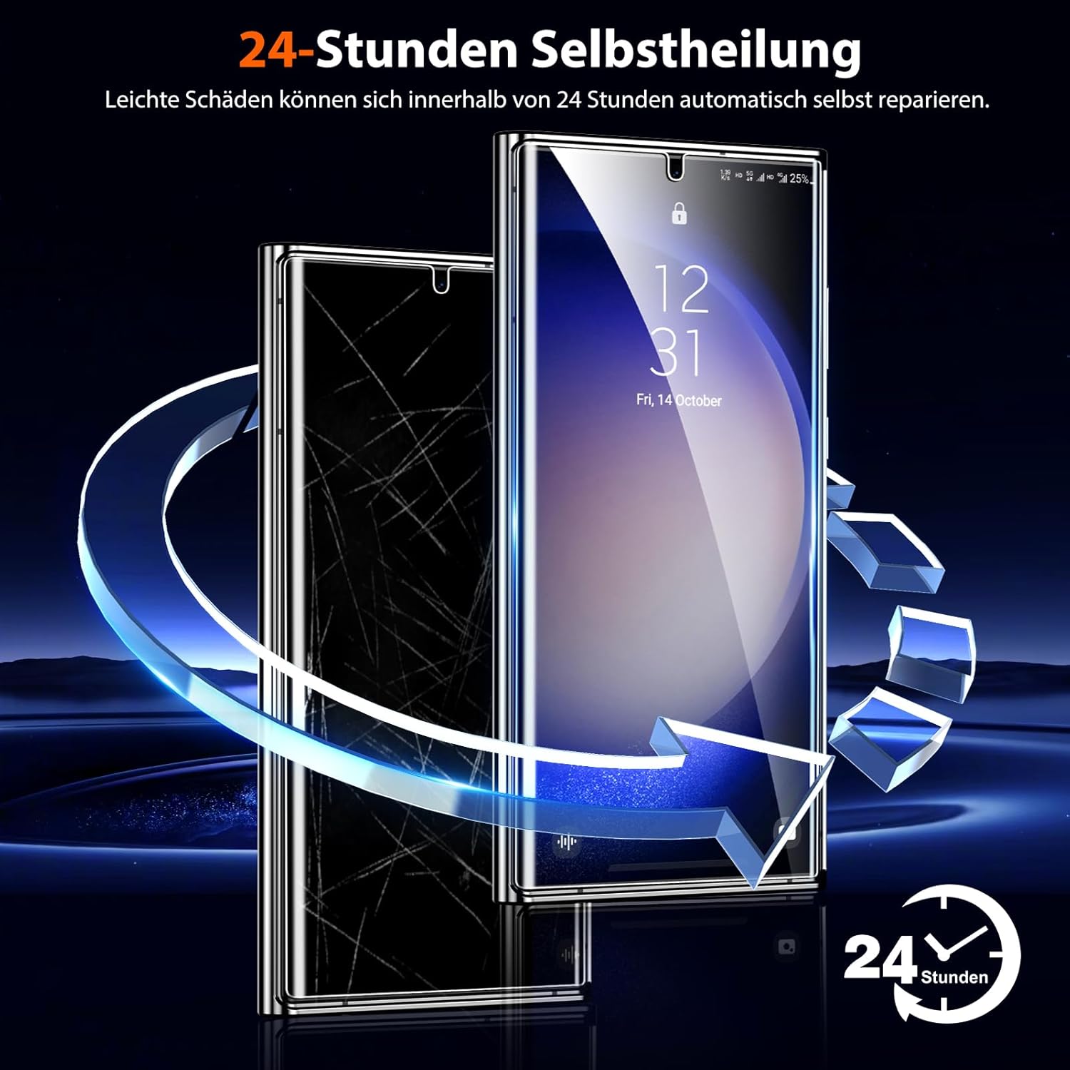 Verträglichkeit: UniqueMe Displayschutzfolie, präzise lasergeschnitten, deckt Kanten und Ecken des Galaxy S22 Ultra/S23 Ultra ab, schützt vor Staub und Schmutz. Enthält 2 Prime 7H PET Schutzfolien. Hinweis: Dies ist Folie, kein gehärtetes Glas. 7H PET Material: Schutzfolie bietet 3D Vollabdeckung, hohe Haftung, präzise Passform und überlegene Stoßfestigkeit. Genießen Sie optimalen Schutz, ohne Haltbarkeit und Reaktionsfähigkeit zu beeinträchtigen. Fingerabdruck-Erkennung: 7H PET Schutzfolie mit polierter Oberfläche und rutschfester Schicht unterstützt Fingerabdruck-Erkennung auf Samsung Galaxy S22 Ultra/S23 Ultra. Aktiviert den Bildschirm in 0,1 Sekunden, gewährleistet Glätte und schnelle Reaktion. Selbstheilungsfunktion: UniqueMe entwickelt für Samsung Galaxy S22 Ultra/S23 Ultra eine Technologie, die Kratzer und Dellen in 24 Stunden repariert. Hydrophobe und oleophobe Beschichtung verhindert Fingerabdrücke und hält den Bildschirm sauber. Einzigartiges Werkzeug: UniqueMe Folie mit einem Werkzeug, das schnelle, blasenfreie Installation ermöglicht. Dieses Werkzeug gewährleistet effiziente Anbringung und verlängert die Lebensdauer der Displyschutz. | قیمت یورویی : 21.65€
