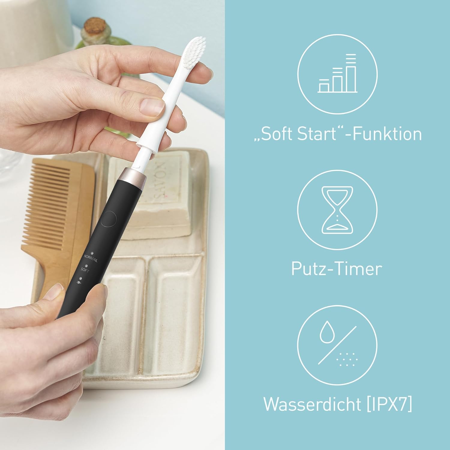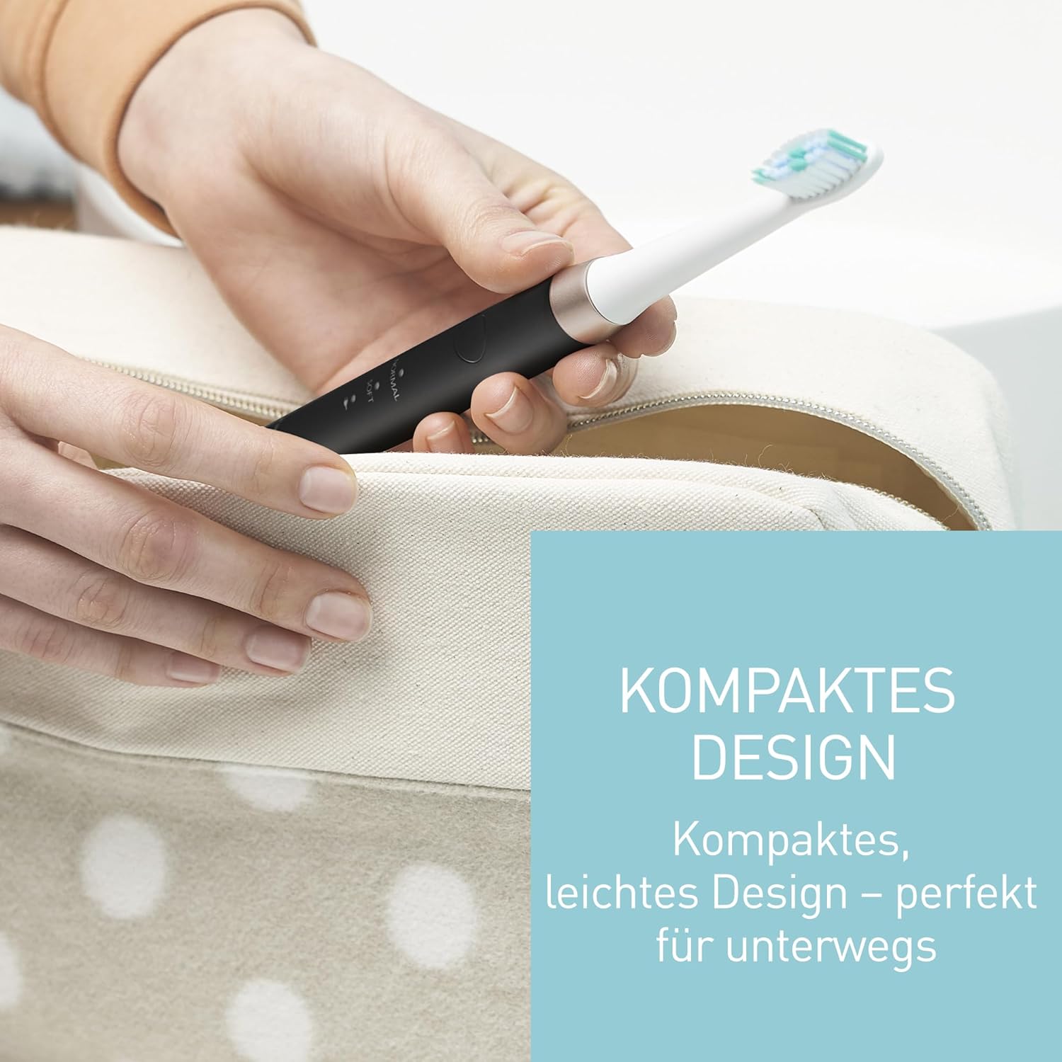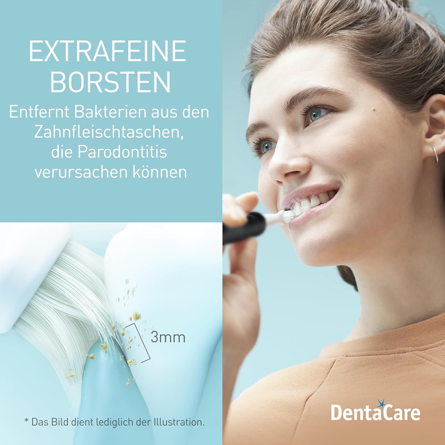 EXTRAFEINE BÜRSTE: Der Zahnbürstenkopf verfügt über extrafeine 0,02-mm-Borsten & 3-mm-Spitzen, um sanft in parodontale Zahnfleischtaschen zu gelangen, versteckten Plaque und Bakterien zu entfernen und empfindliche Zähne und Zahnfleisch zu schützen SCHALLVIBRATION: Hochgeschwindigkeits-Schallvibrationen mit 31.000 Bürstenbewegungen pro Minute entfernen Plaque aus Parodontaltaschen und garantieren eine gründliche und schonende Reinigung von Zähnen und Zahnfleisch 2 BÜRSTENMODI: Mit zwei Bürstenmodi können Sie Ihr Reinigungserlebnis individuell anpassen: SOFT-Modus für Erstbenutzer und REGULAR-Modus für den normalen Gebrauch 2 BÜRSTENARTEN: Verbessern Sie Ihre Mundhygiene mit zwei Spezialbürsten: einer extrafeinen Bürste zum Reinigen der Zahnfleischtaschen und einer Multi-Fit-Bürste zur Oberflächenreinigung und für schwer zugängliche Stellen KOMPAKT & TRAGBAR: Diese elegante und komfortable elektrische Zahnbürste ist ideal für unterwegs. Sie ist leicht und kompakt und somit perfekt für die Zahnpflege unterwegs EINFACH ZU BEDIENEN: Mit ihrer 30-minütigen Akkulaufzeit, dem Putztimer und der Softstart-Funktion ist diese elektrische Zahnbürste perfekt für die Mundgesundheit | قیمت یورویی : 51.66€