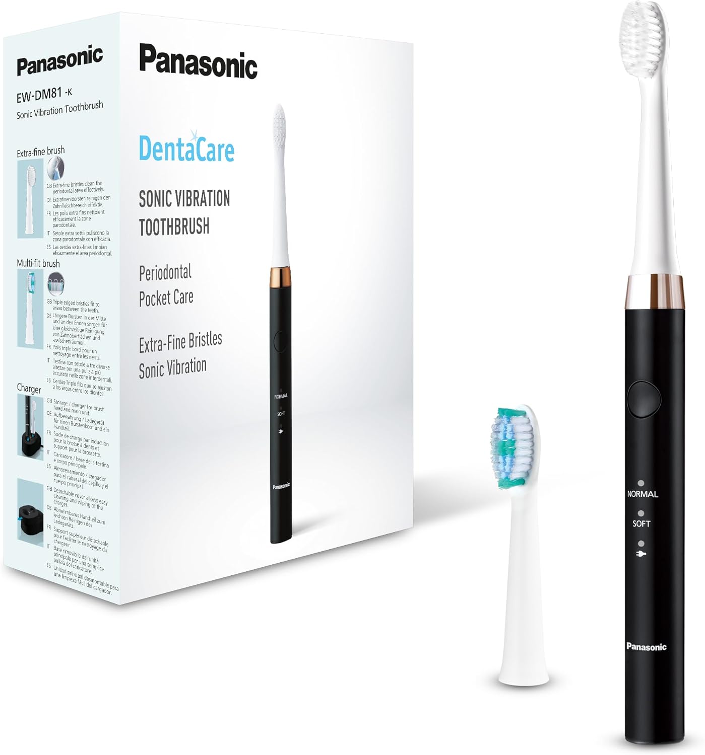Panasonic EW-DM81-K503 Wiederaufladbare elektrische Zahnbürste, 1 extrafeine Bürste & 1 Multi-Fit-Bürste, Ladestation, Schallvibration, 2 Putzmodi, 30 Minuten Akkulaufzeit, LED-Akkuanzeige, Schwarz | قیمت یورویی 51.66€